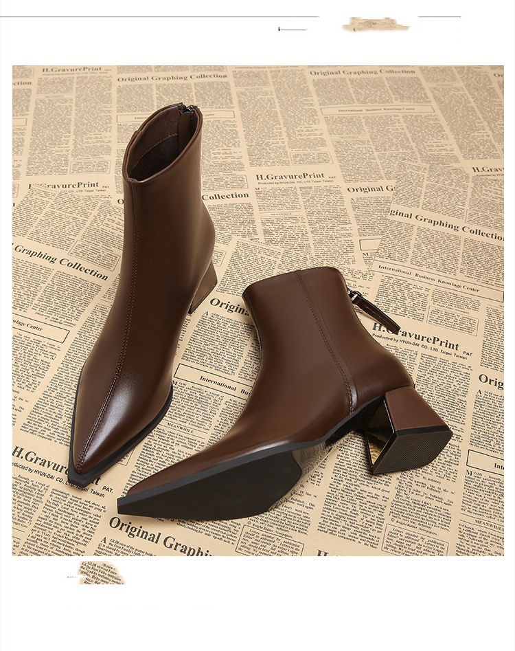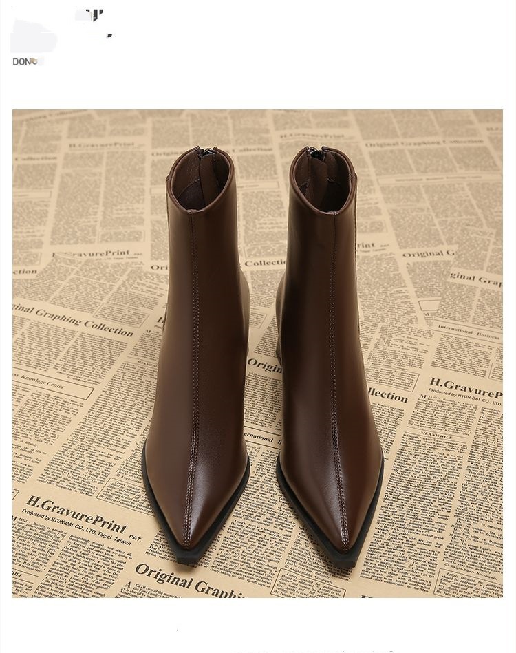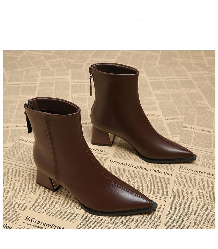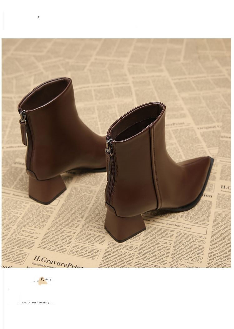 2024 새로운 포인팅 두꺼운 힐 하이 엔드 쇼트 부츠 여성 가을 및 겨울 하이힐 슈즈 작은 남성 봄과 가을 프랑스 여성 부츠
