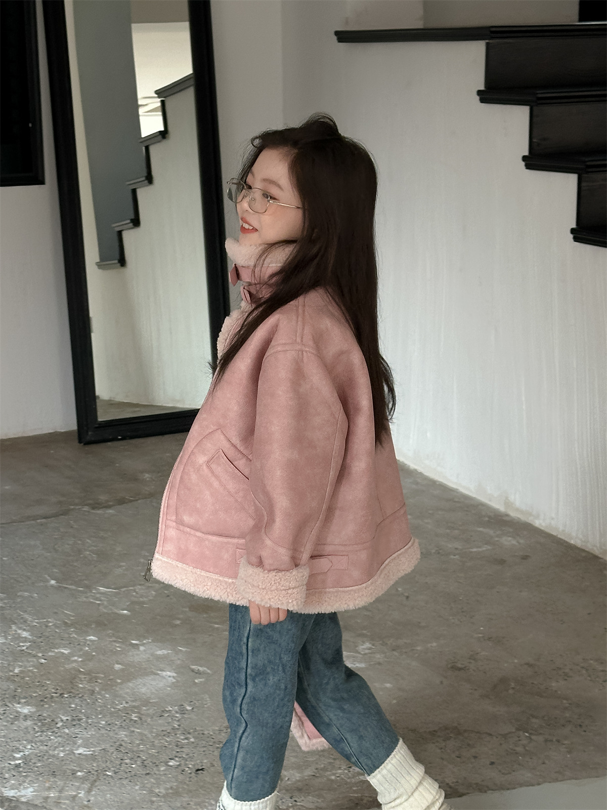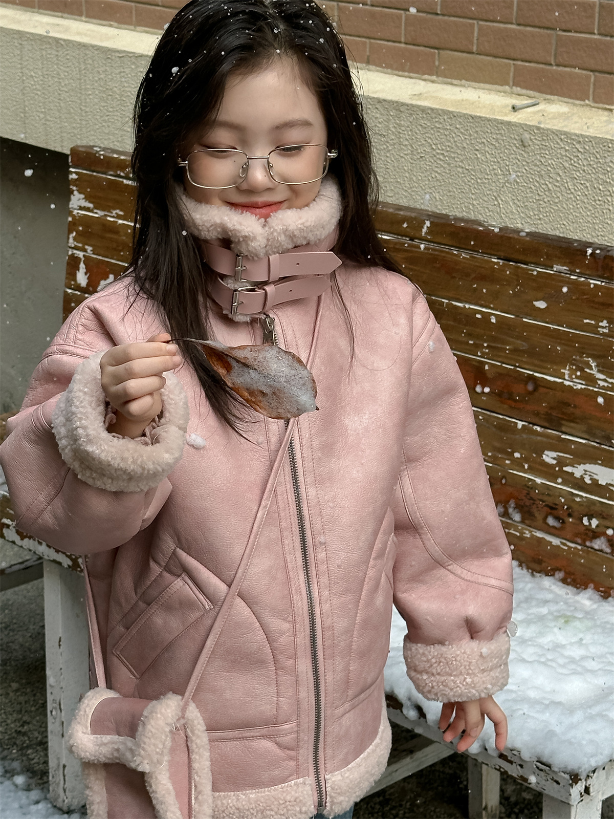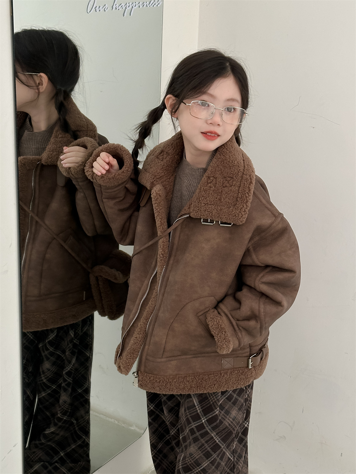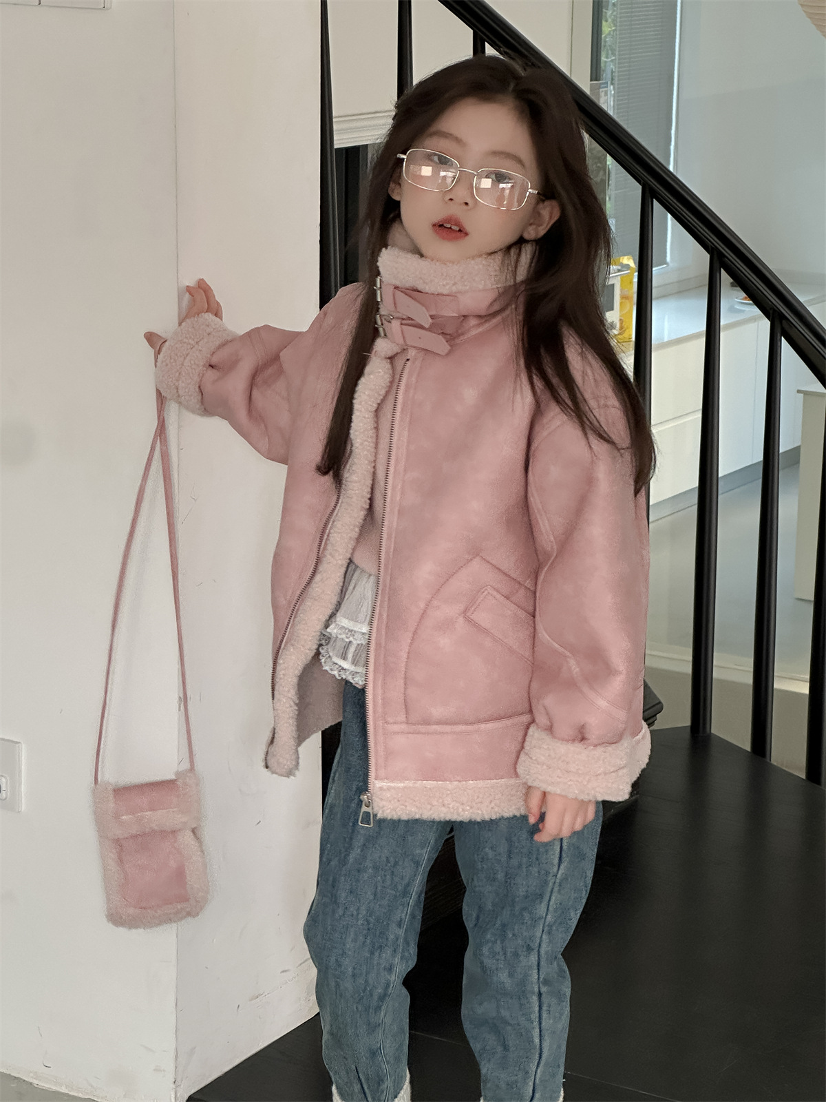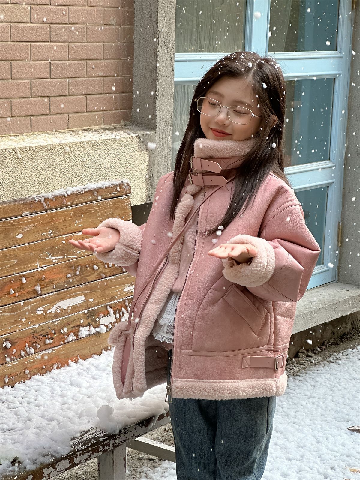 어린이 코트를 찾는 꽃과 소녀 2024 새로운 어린이 기모 겨울 모피 한 겨울 양가죽 코트스토어 가기