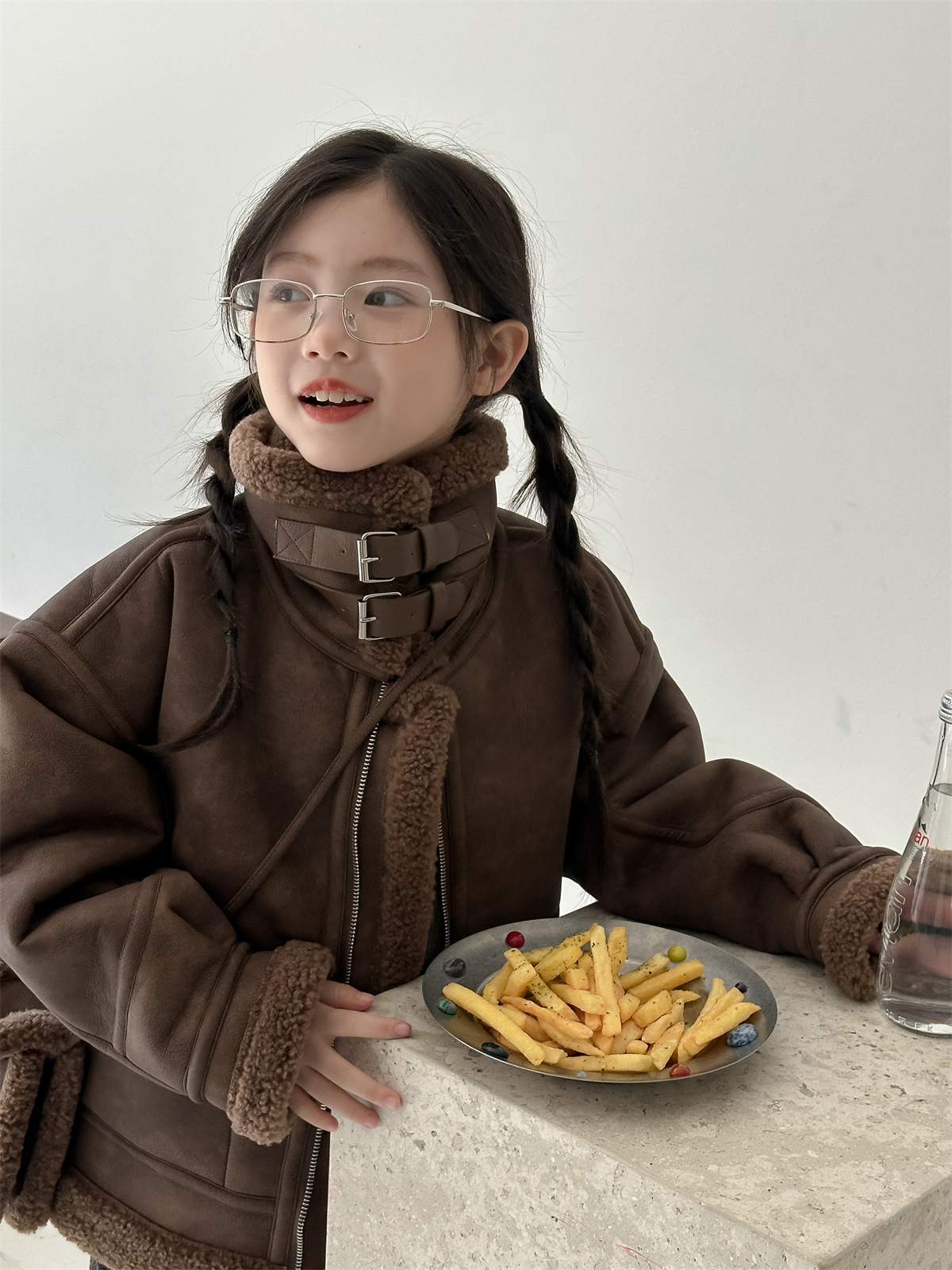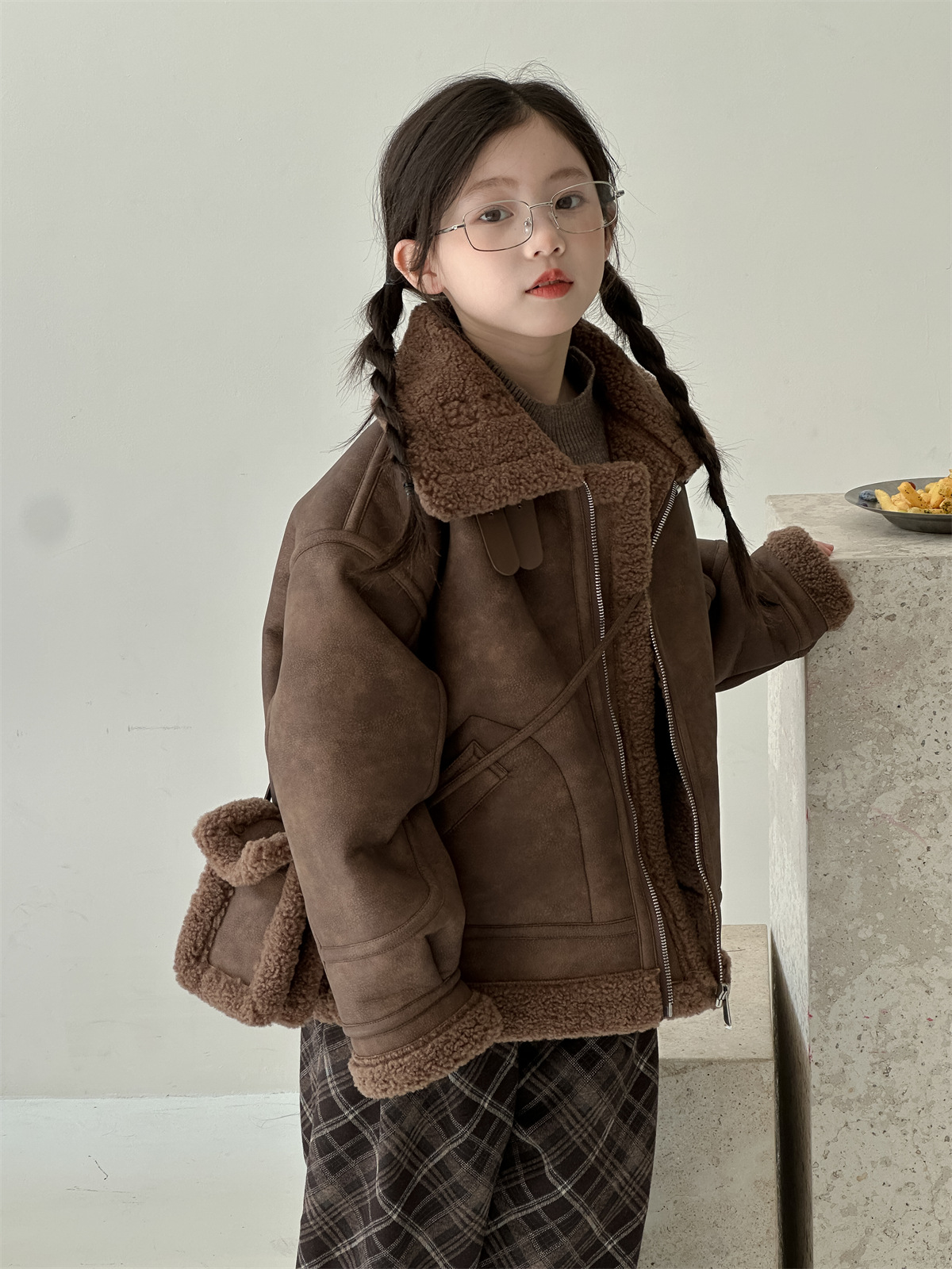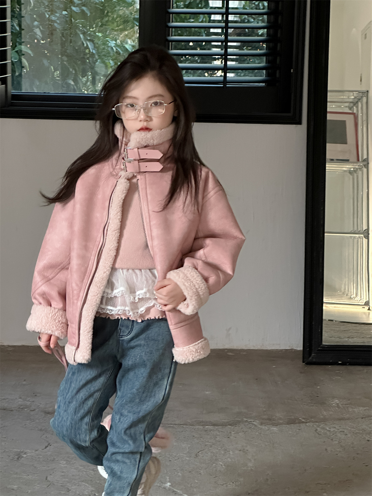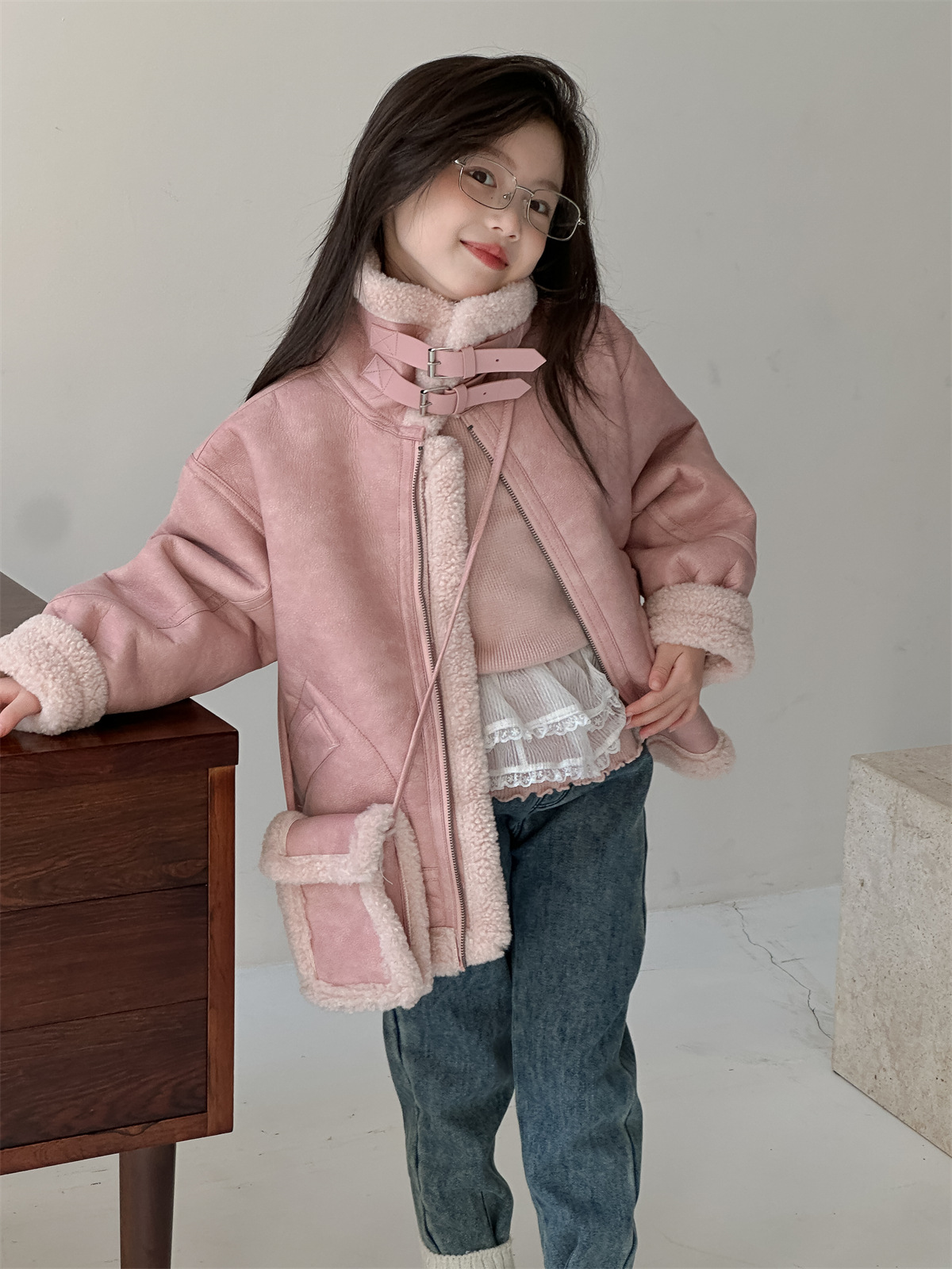 어린이 코트를 찾는 꽃과 소녀 2024 새로운 어린이 기모 겨울 모피 한 겨울 양가죽 코트스토어 가기