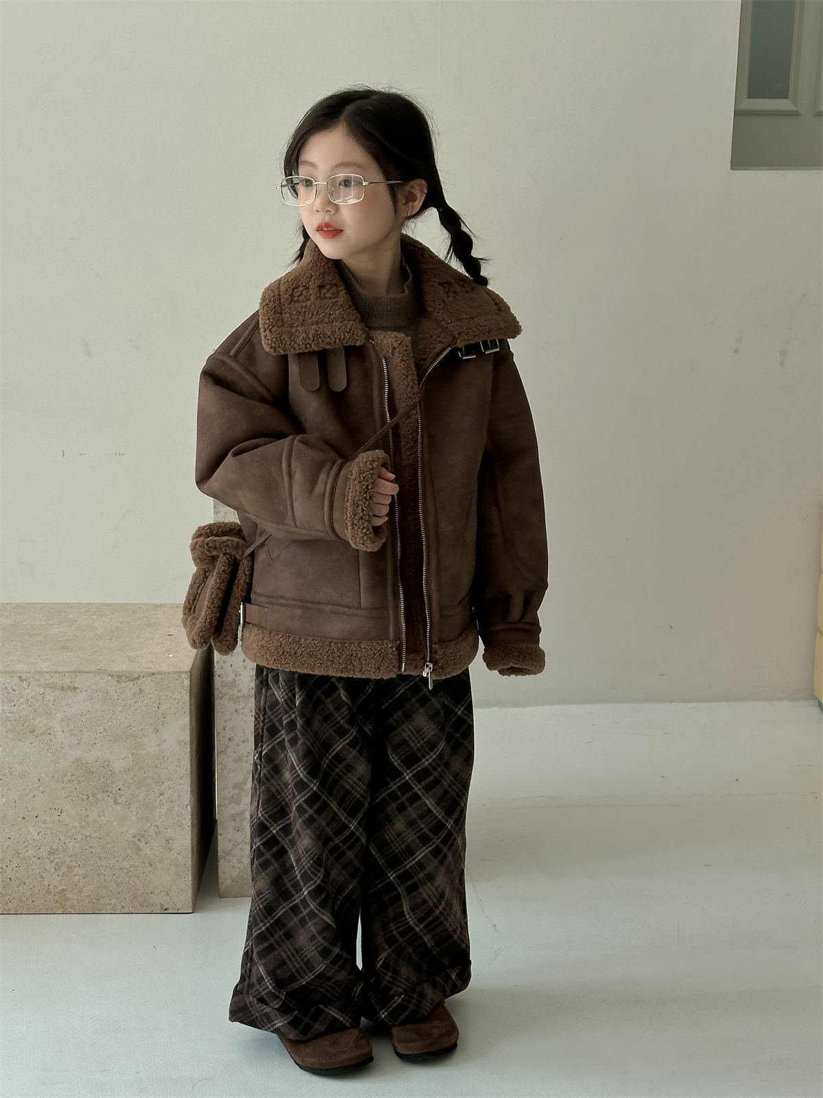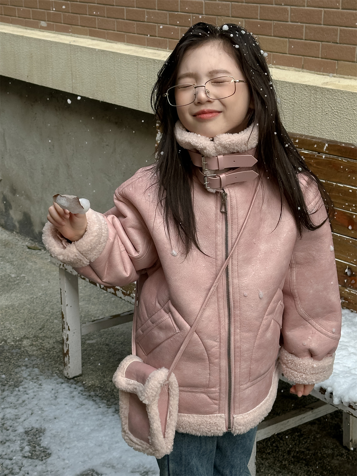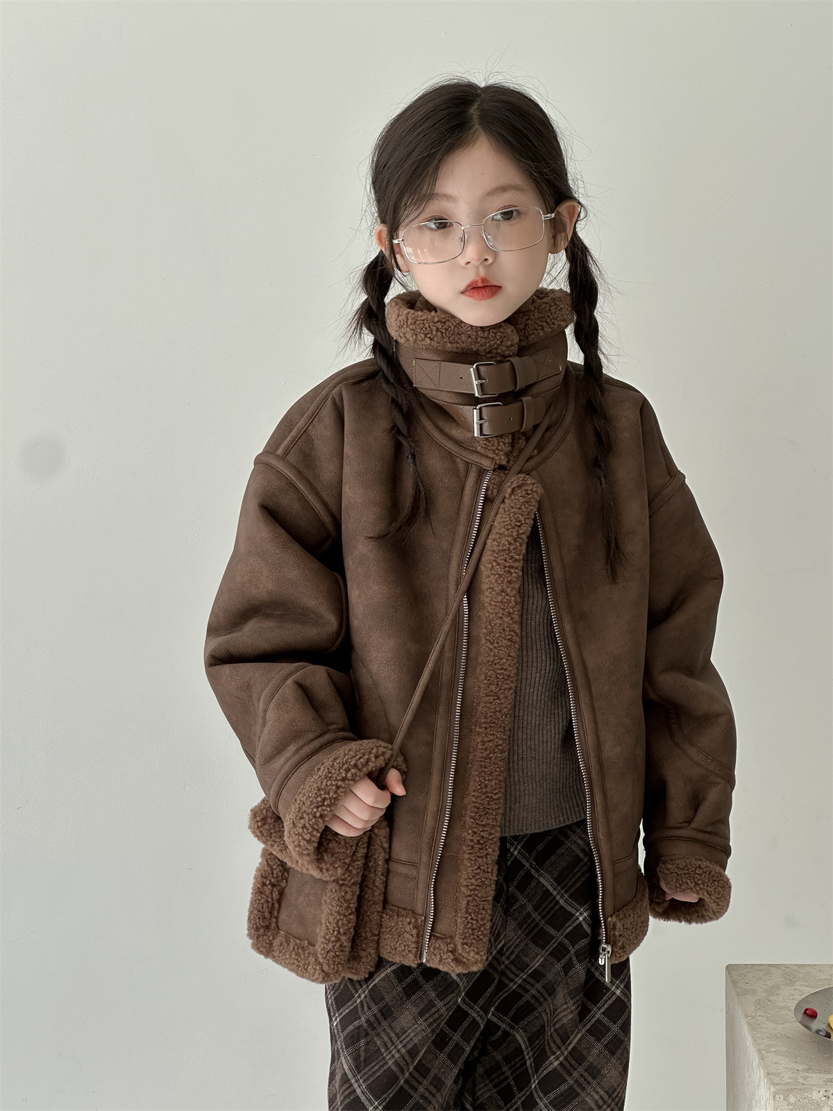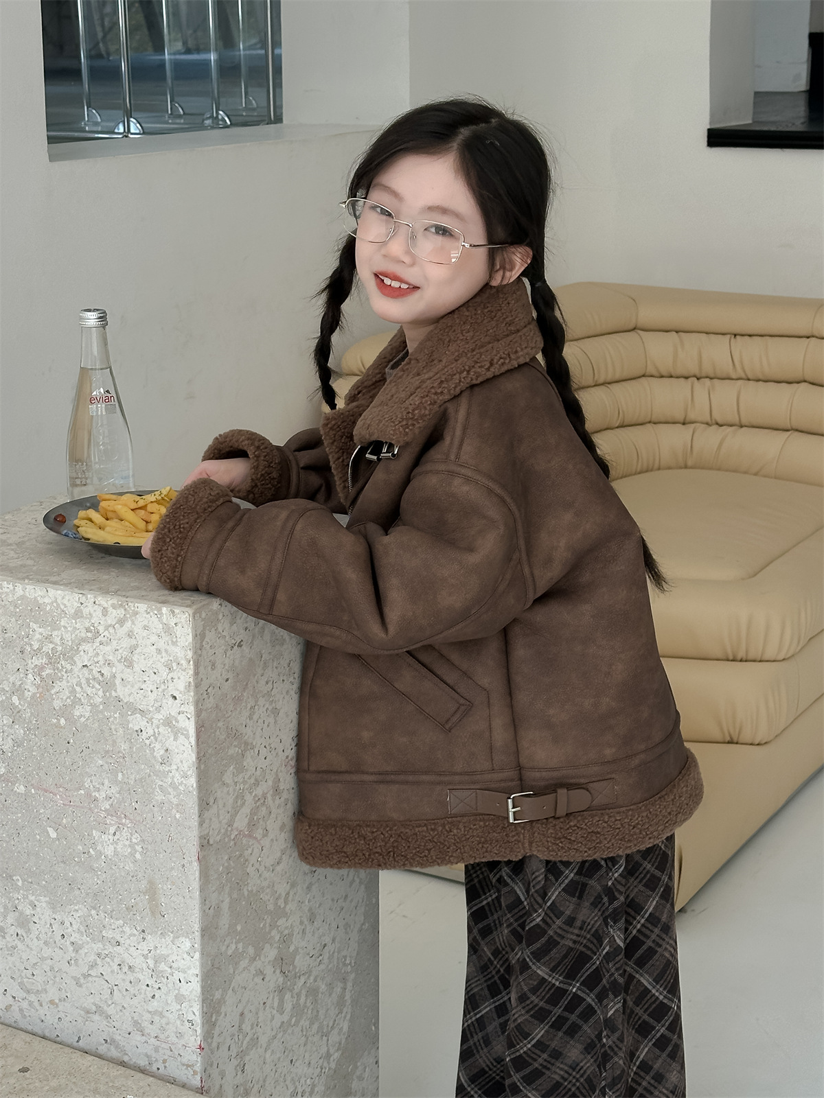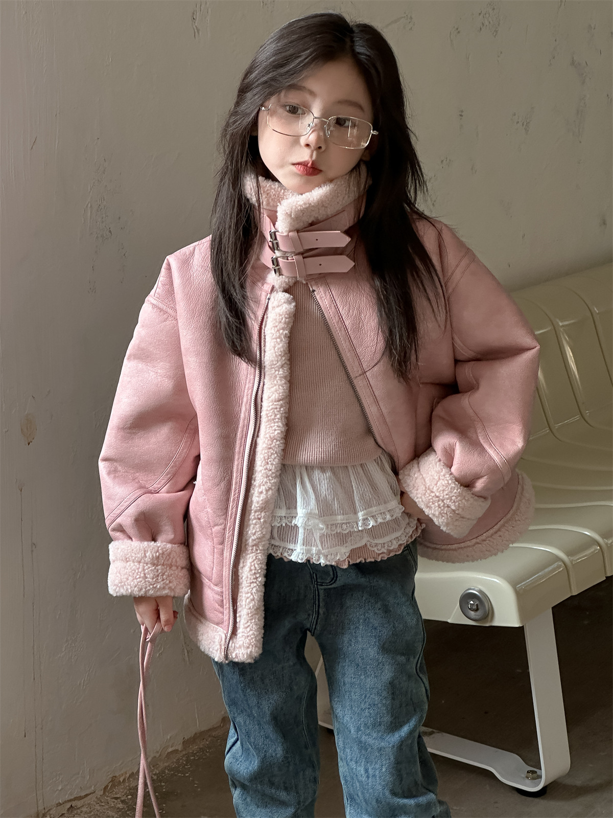 어린이 코트를 찾는 꽃과 소녀 2024 새로운 어린이 기모 겨울 모피 한 겨울 양가죽 코트스토어 가기
