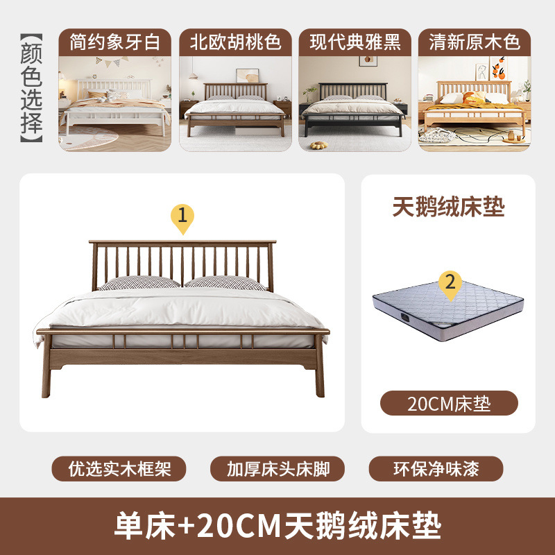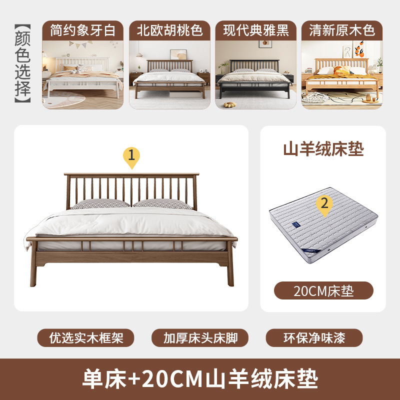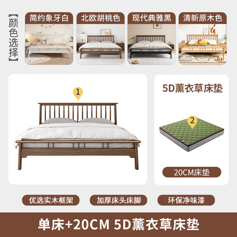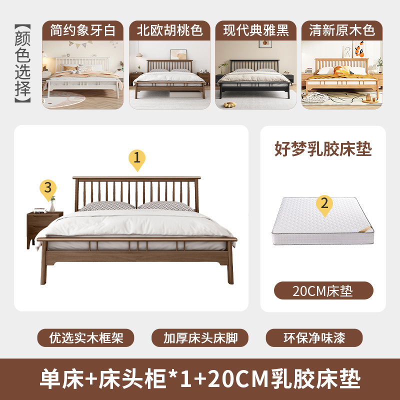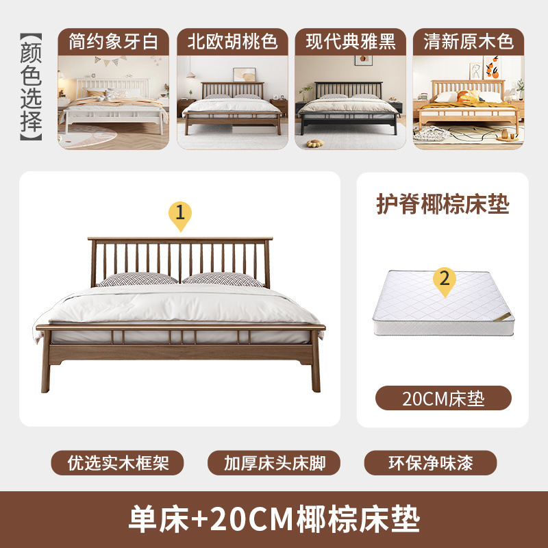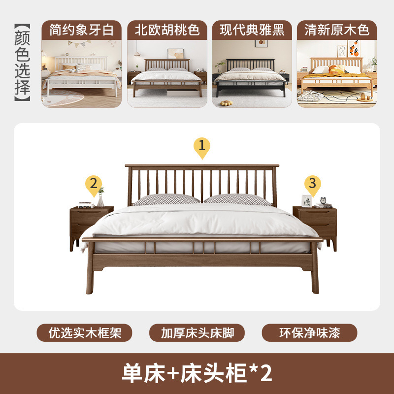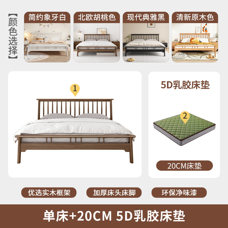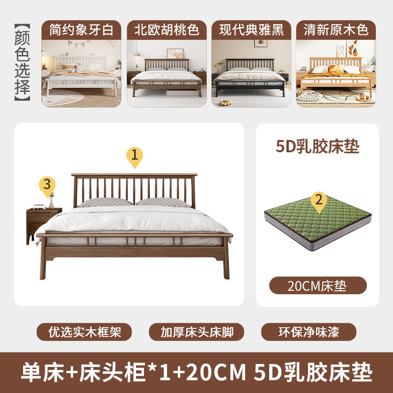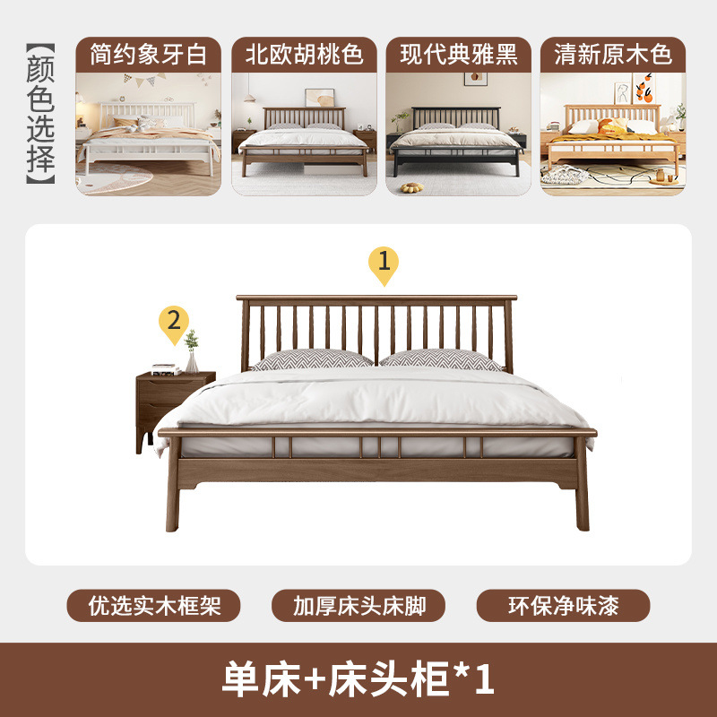 북유럽 단단한 나무 침대 1.2 m 싱글 1 m 5 모든 단단한 나무 현대 간단한 1.8m 복고풍 더블 마스터 침실 단단한 나무 침대스토어 가기