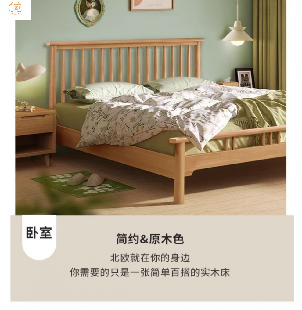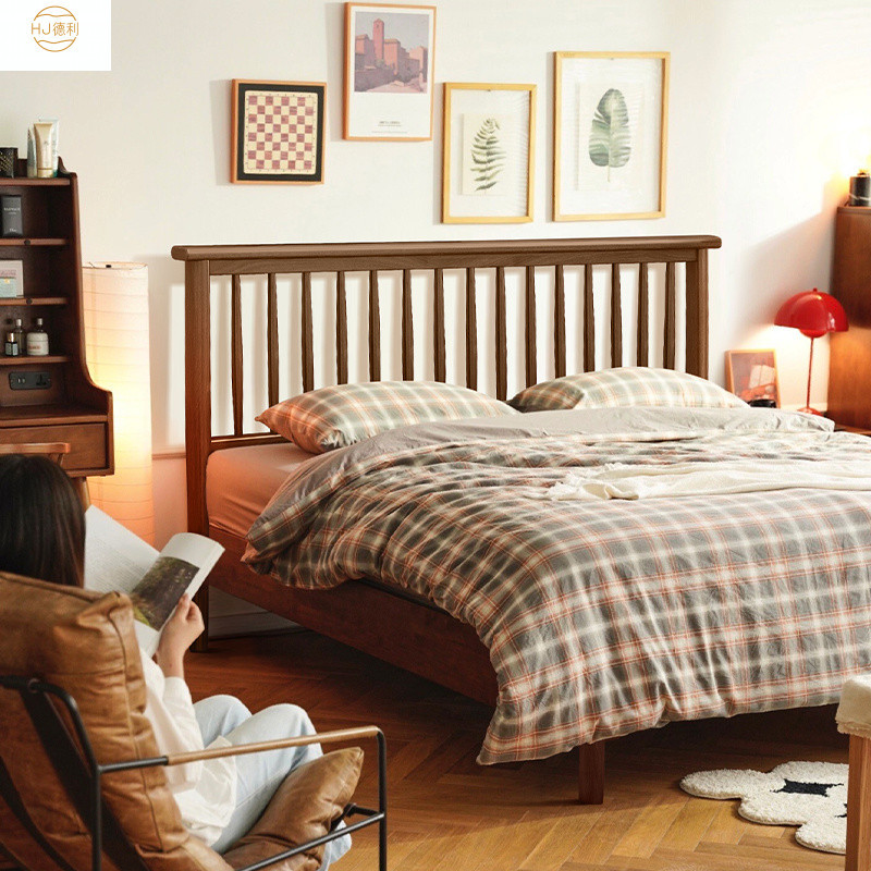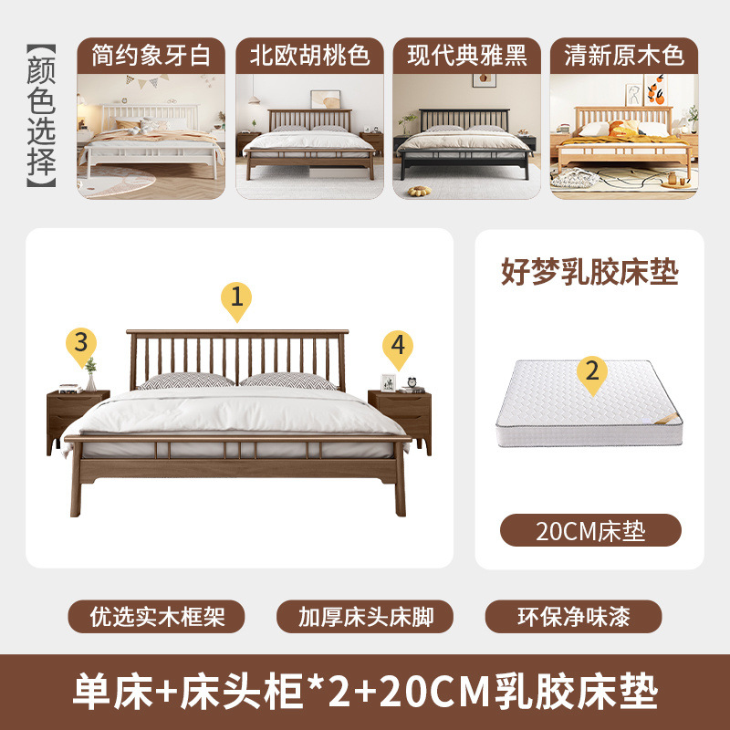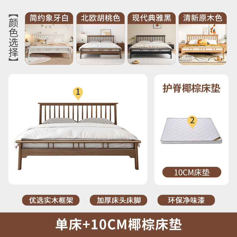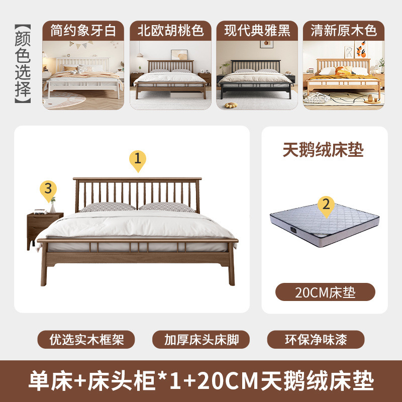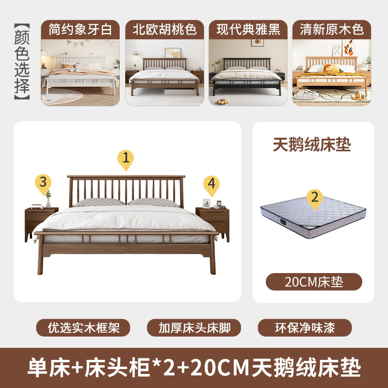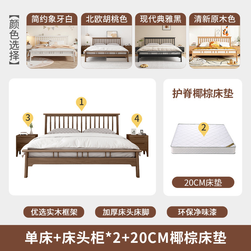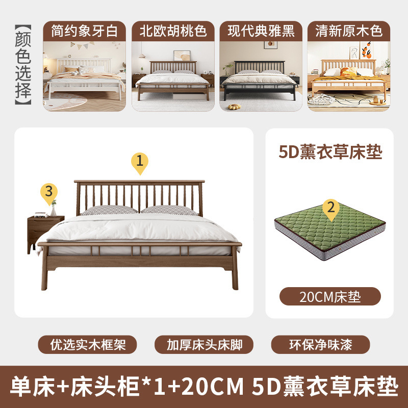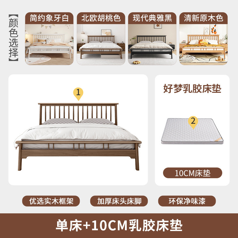 북유럽 단단한 나무 침대 1.2 m 싱글 1 m 5 모든 단단한 나무 현대 간단한 1.8m 복고풍 더블 마스터 침실 단단한 나무 침대스토어 가기