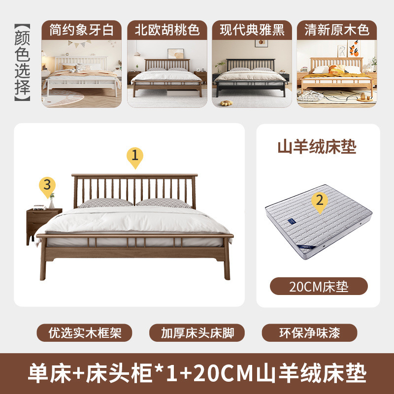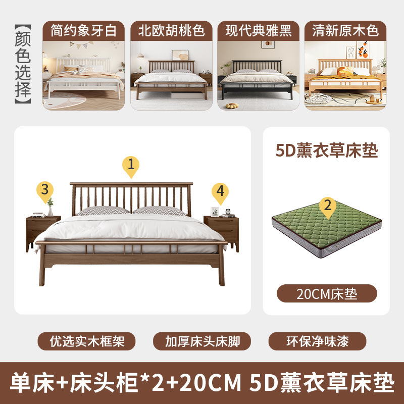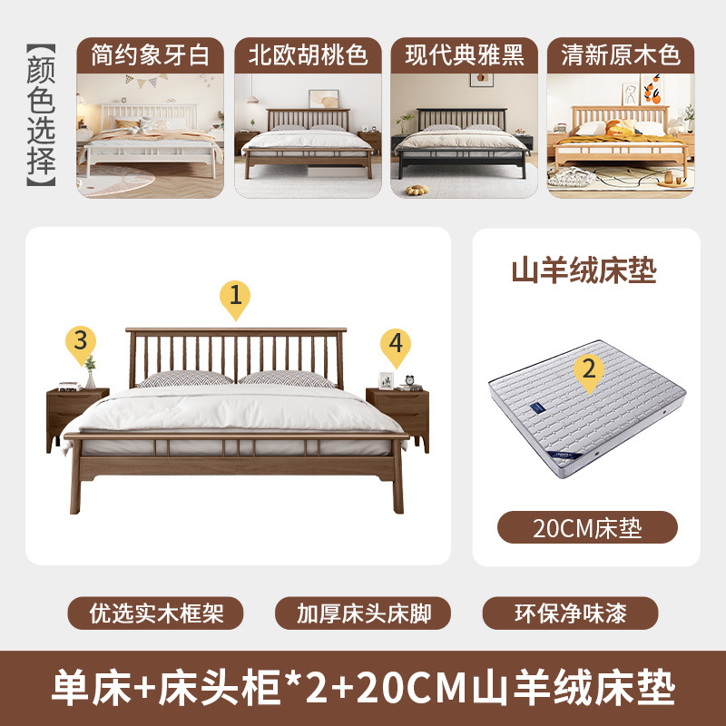 북유럽 단단한 나무 침대 1.2 m 싱글 1 m 5 모든 단단한 나무 현대 간단한 1.8m 복고풍 더블 마스터 침실 단단한 나무 침대