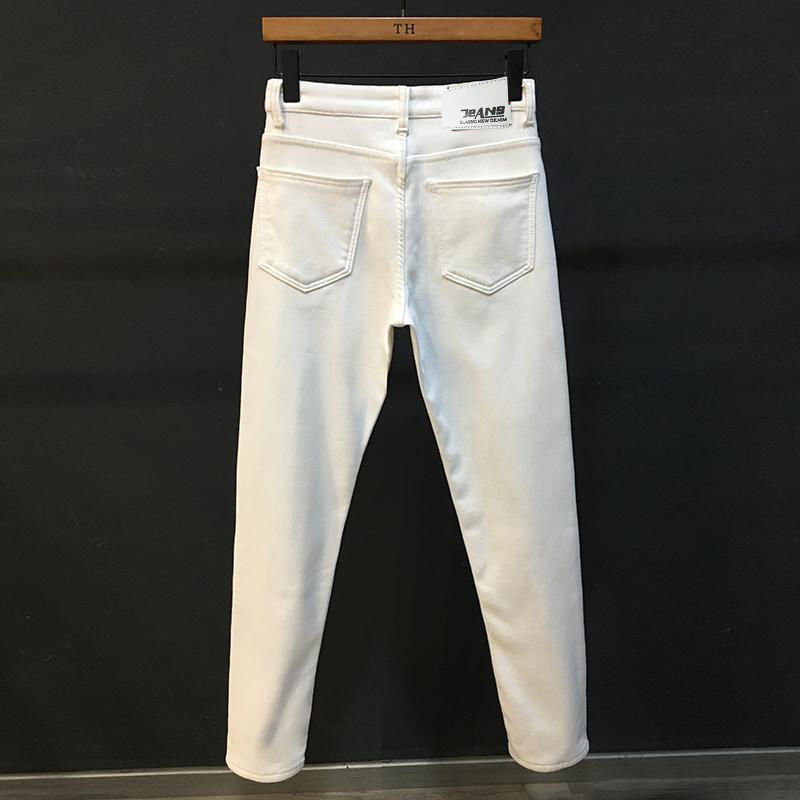겨울 기모 두꺼운 퓨어 화이트 청바지 남성용 트렌디 한 한국식 캐주얼 올 매치 스트레치 슬림 핏 바지 파워 암소