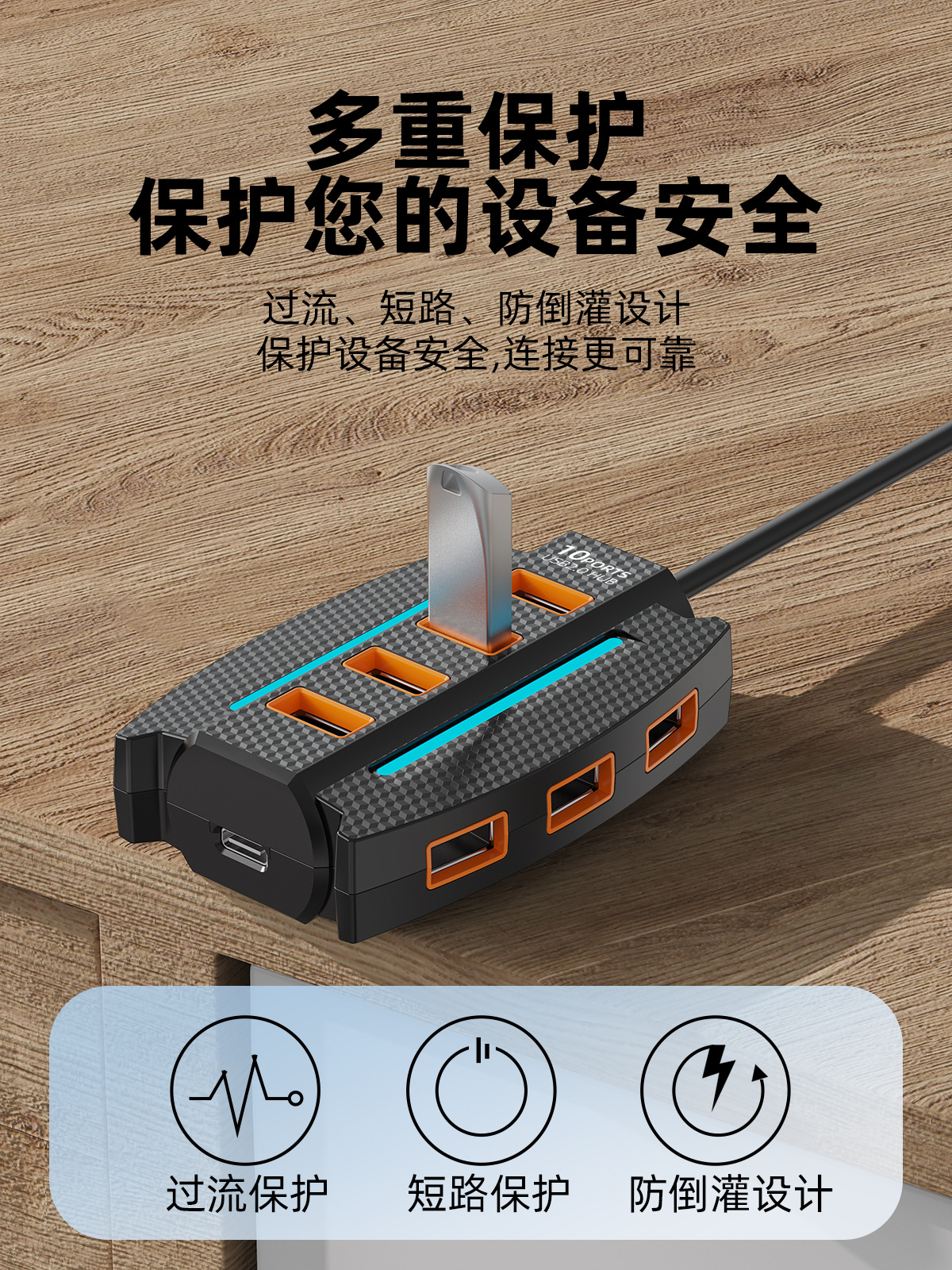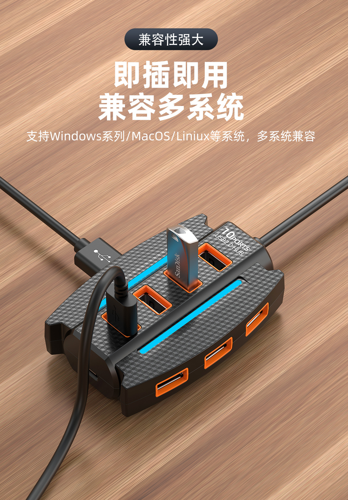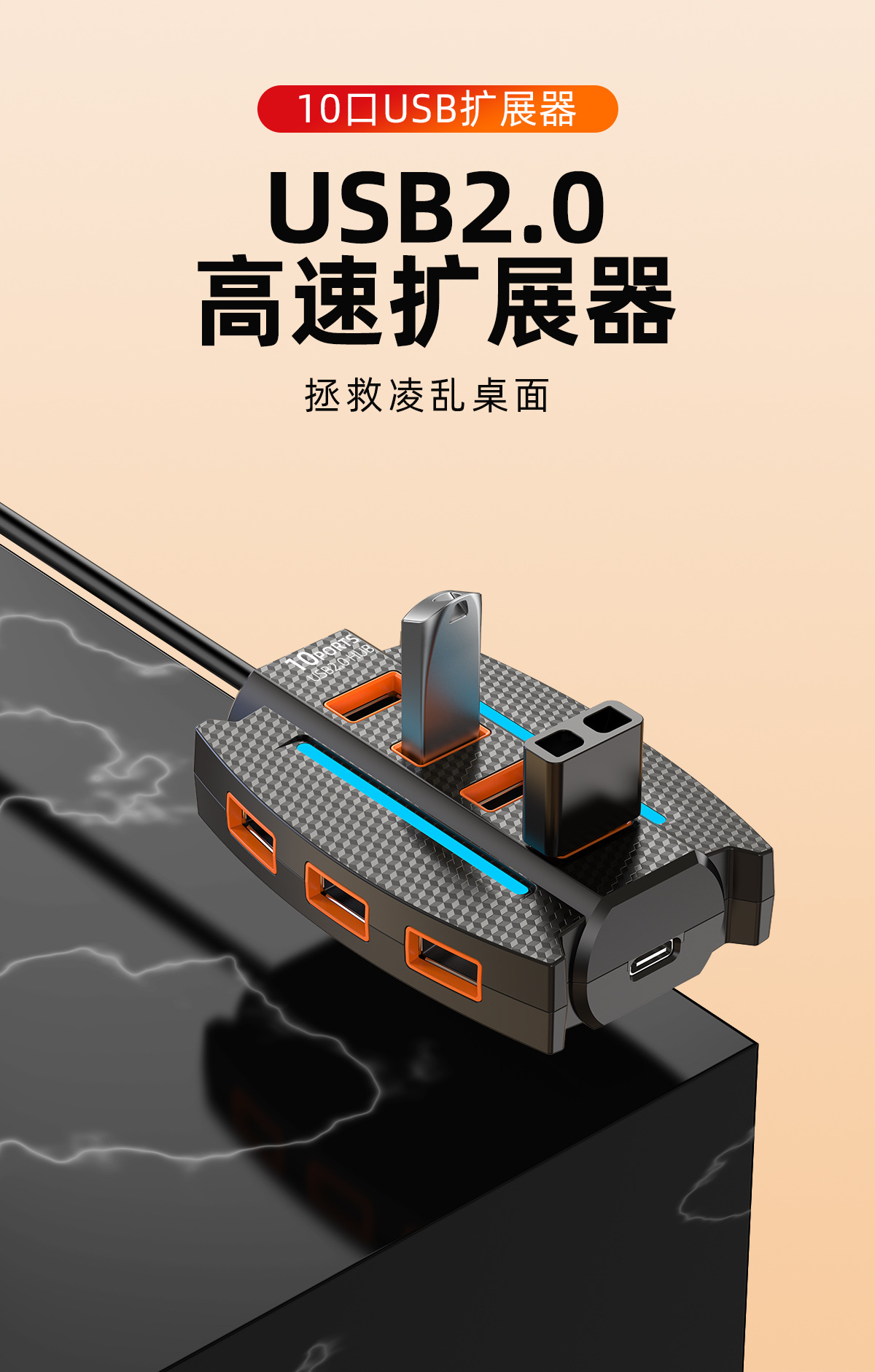 크로스보더 확장 허브 10포트 분배기 USB2.0 다중 인터페이스 허브 외부 전원 공급 가능스토어 가기