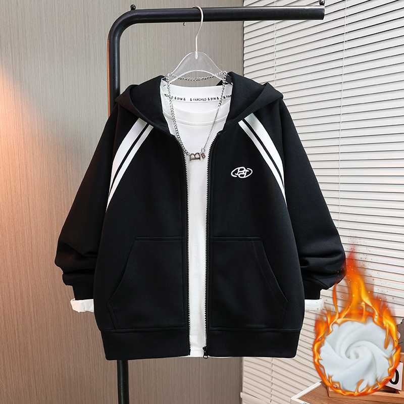 소년의 가을과 겨울 새로운 기모 지퍼 후디 대형 어린이 스웨터 재킷 어린이 패셔너블 루즈 두껍게스토어 가기