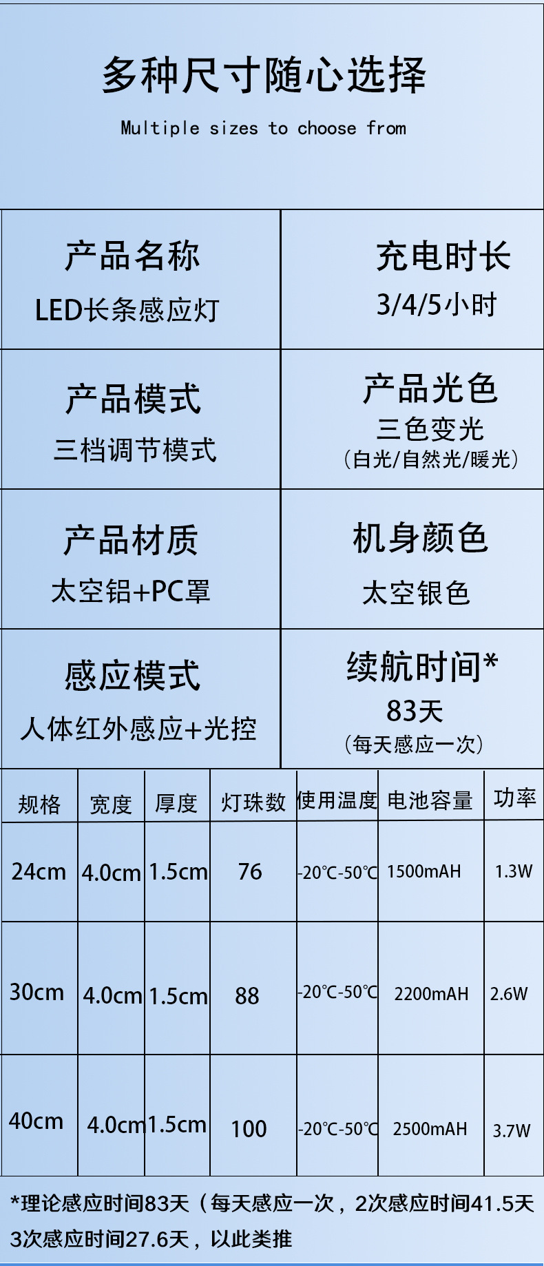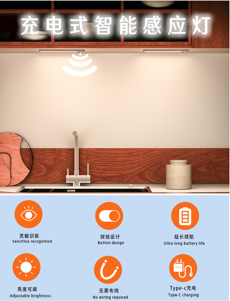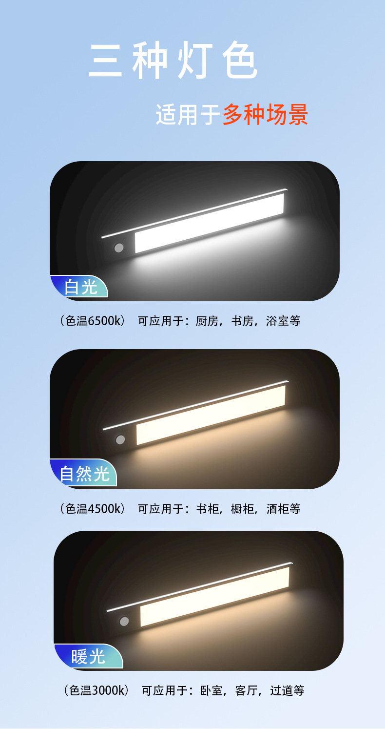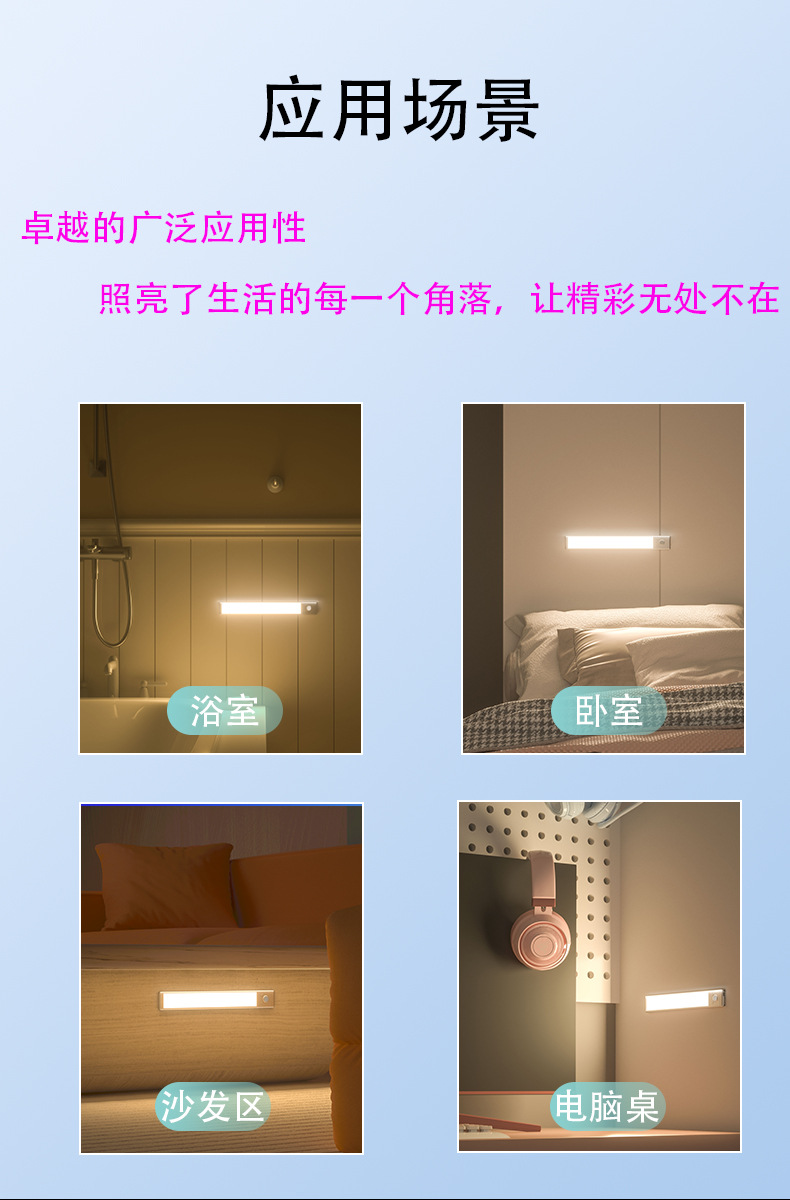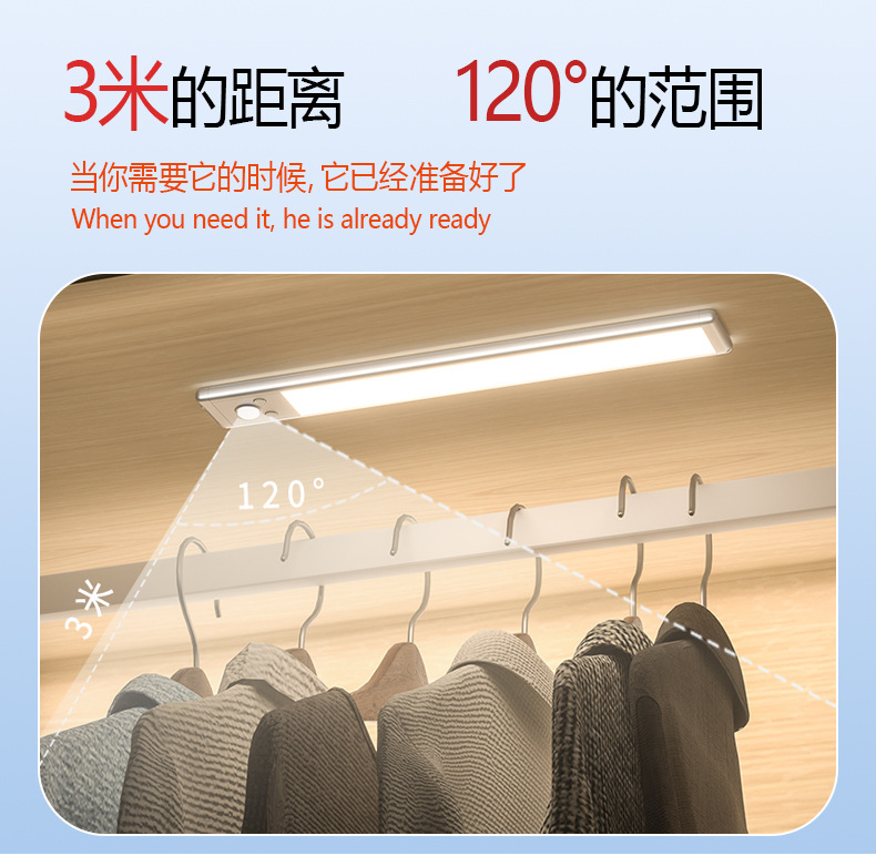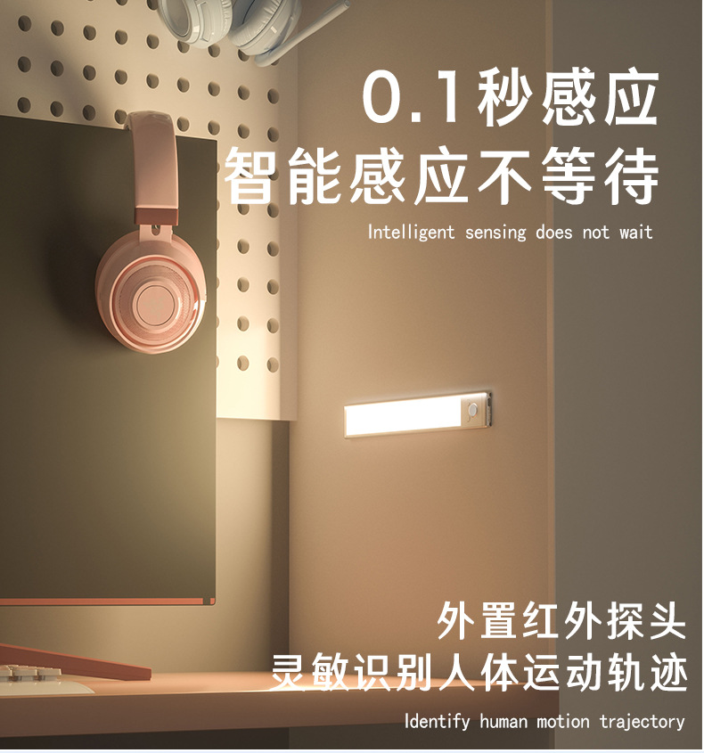 국경 주도 인체 유도 램프 자기 흡입 비 천공 충전 야간 조명 분위기 램프 캐비닛 옷장 램프 스트립 램프