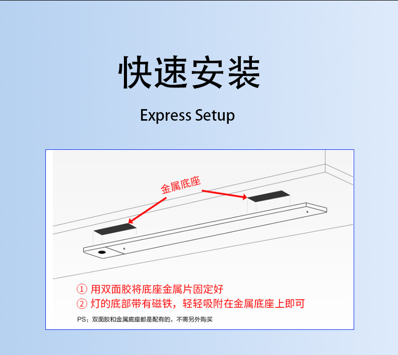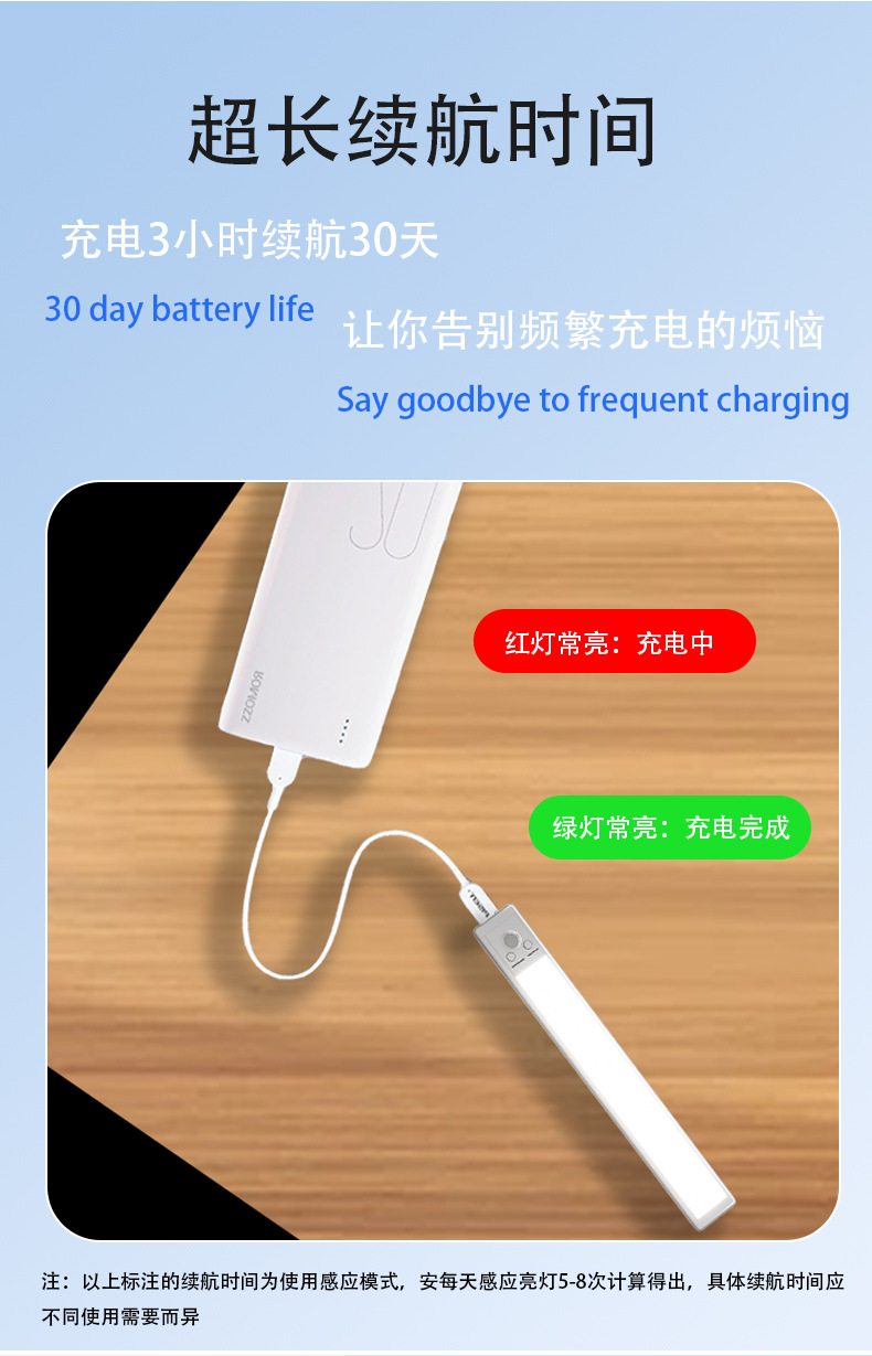 국경 주도 인체 유도 램프 자기 흡입 비 천공 충전 야간 조명 분위기 램프 캐비닛 옷장 램프 스트립 램프스토어 가기