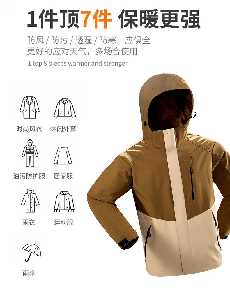 야외 충전 의류 남성 3 대 1 방수 기모 2024 가을/겨울 커플 이동식 등산 자켓스토어 가기