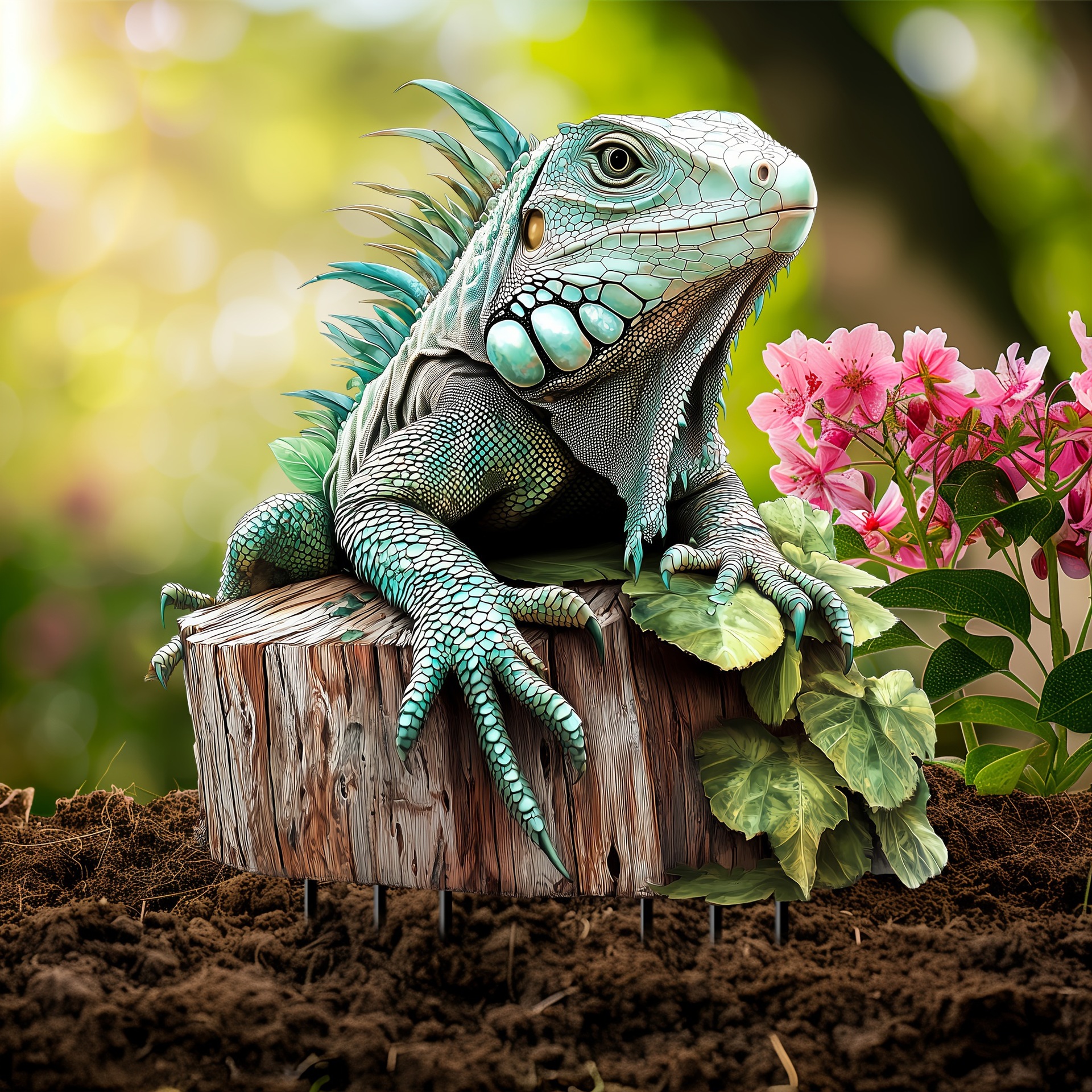 국경 간 수염 도마뱀 동물 아크릴 정원 카드 완벽한 화분 장식 가정 및 정원 장식 소품