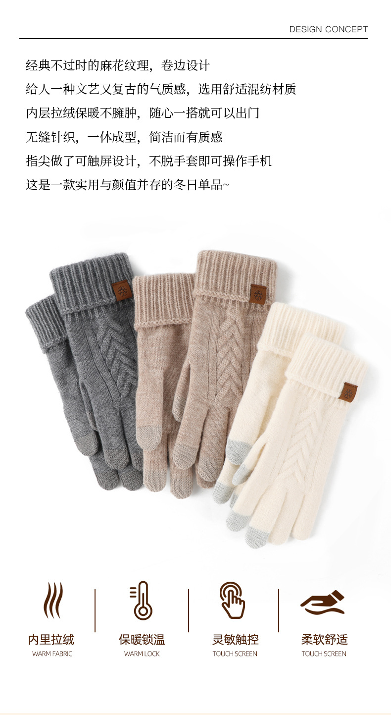맞춤형 모직 장갑 터치 스크린 야외 방한 트위스트 니트 장갑 플러스 벨벳 두꺼운 따뜻한 겨울 장갑