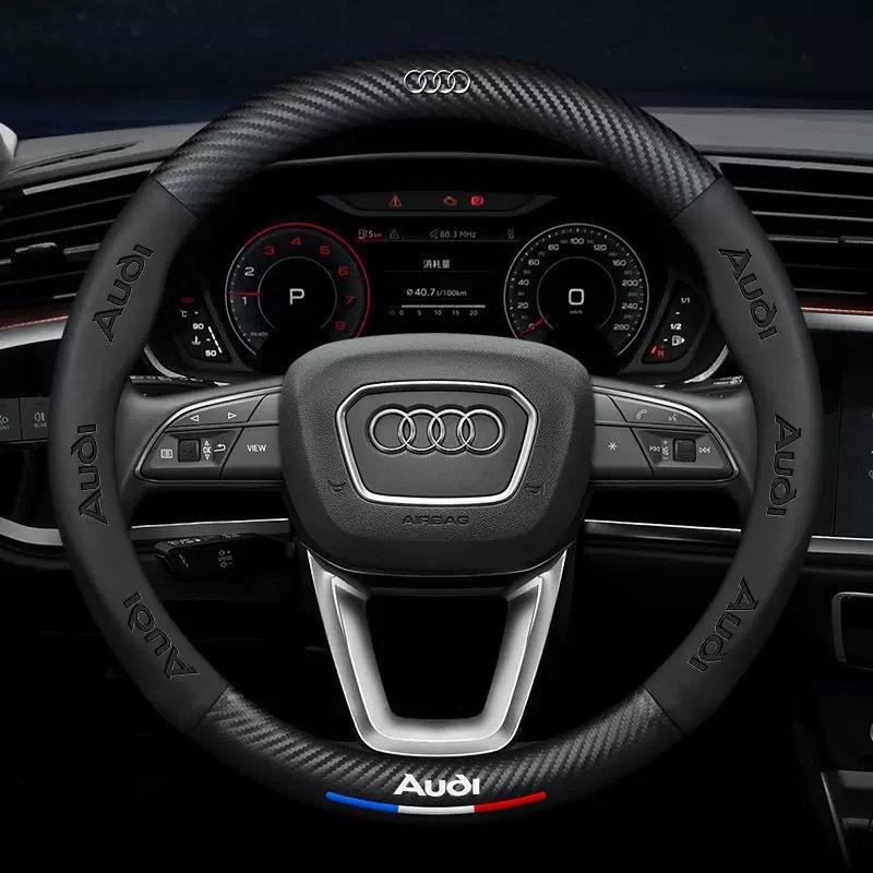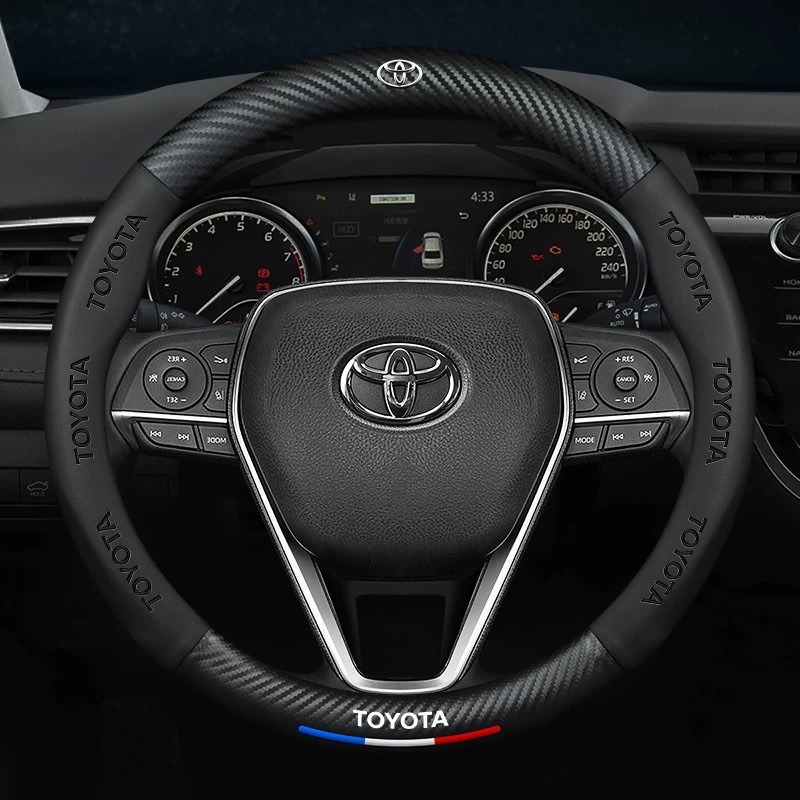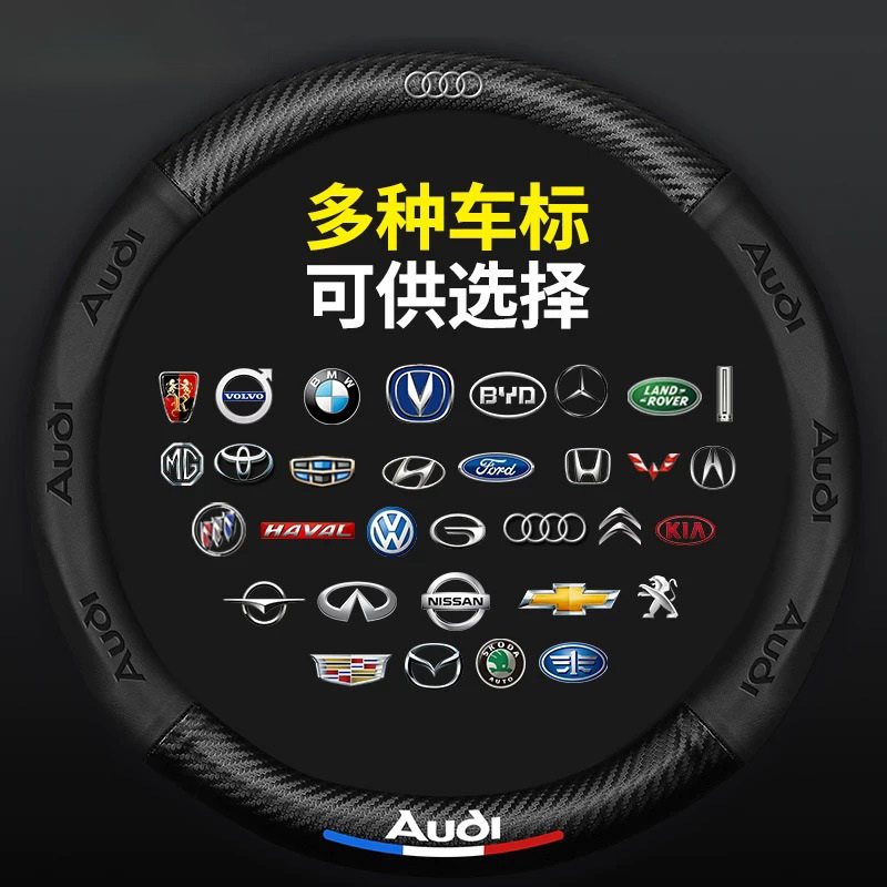 자동차 스티어링 휠 커버 탄소 섬유 엠보싱 자동차 로고 초박형 가죽 핸들 바 커버 통기성 미끄럼 방지 멀티 모델 공장 직접 판매스토어 가기