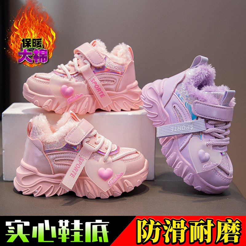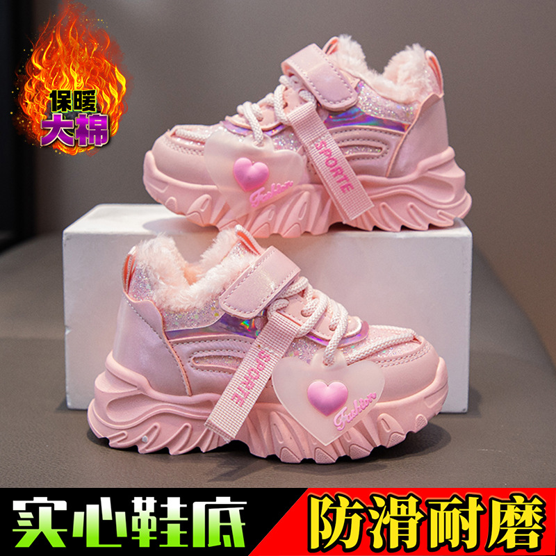 어린이 운동화 두꺼운 여아 토레 신발 겨울 뉴 벨벳 대형면 신발 올매치 따뜻한 여자 러닝화스토어 가기