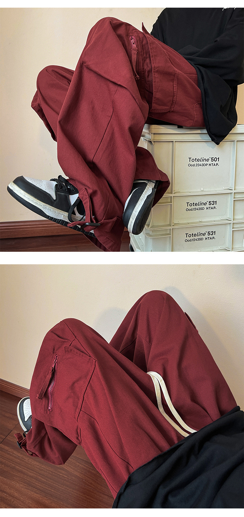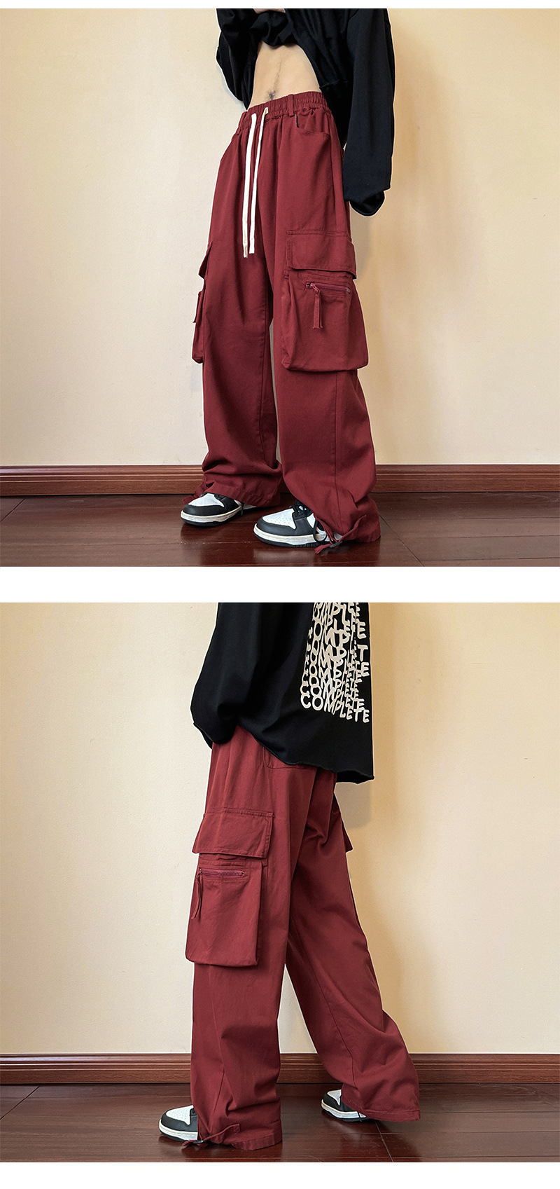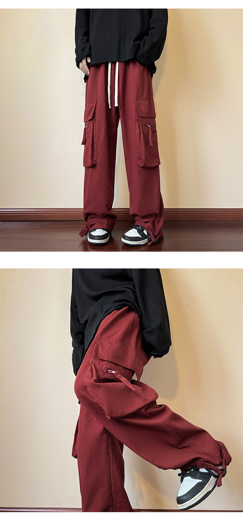 국가 조수 오버 사이즈 팬츠 Ins 하이 스트리트 타이드 기능성 바람 버건디 무선 바지 남성용 스트레이트 무승부 스트리트 댄스 바지스토어 가기