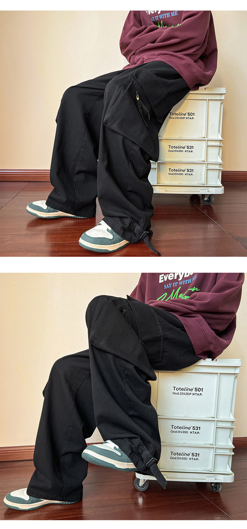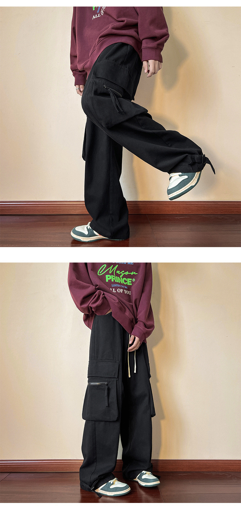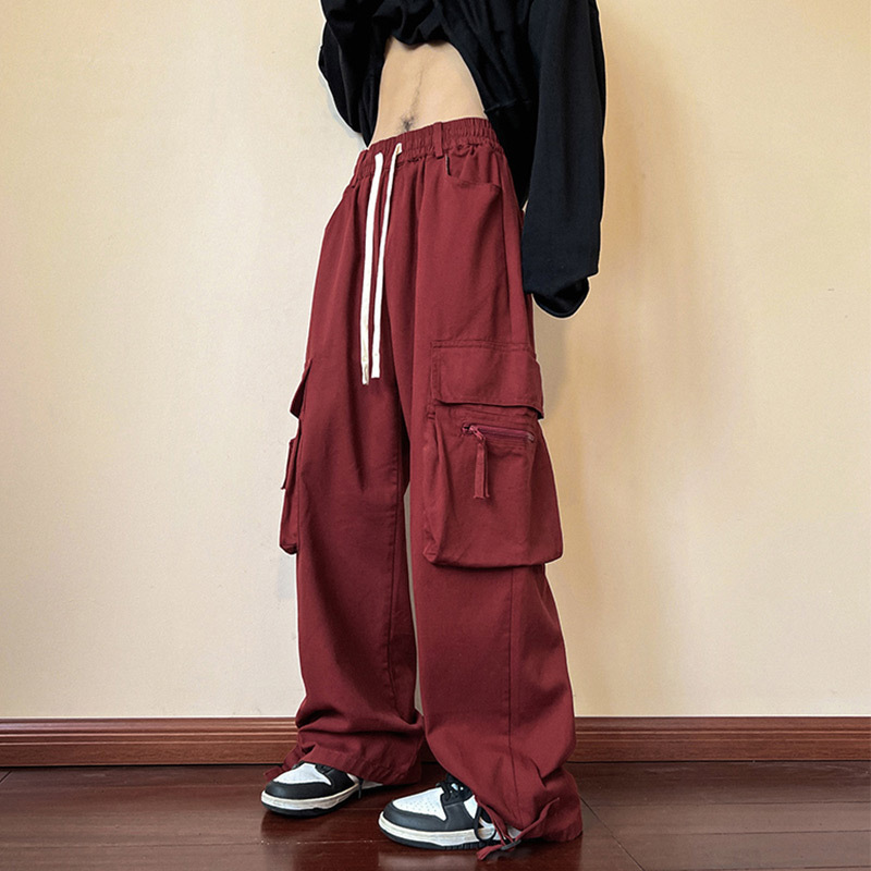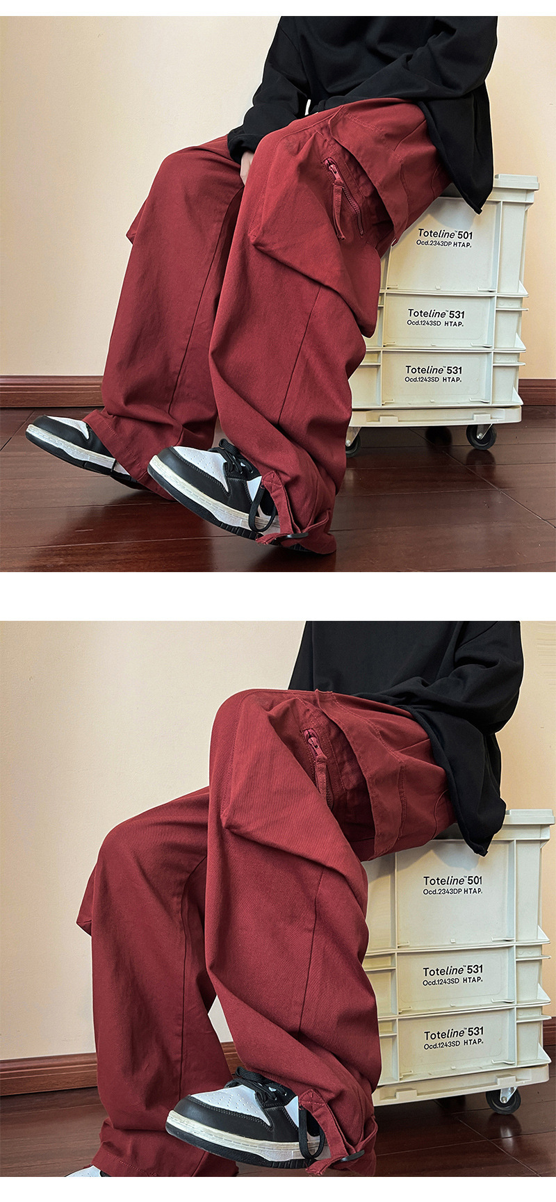 국가 조수 오버 사이즈 팬츠 Ins 하이 스트리트 타이드 기능성 바람 버건디 무선 바지 남성용 스트레이트 무승부 스트리트 댄스 바지스토어 가기