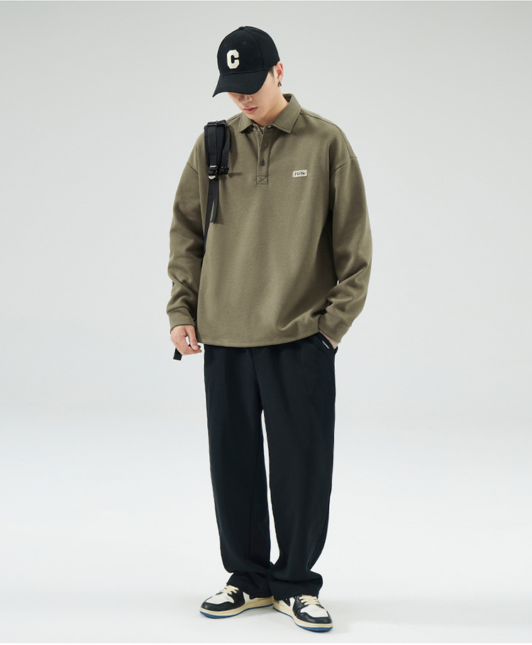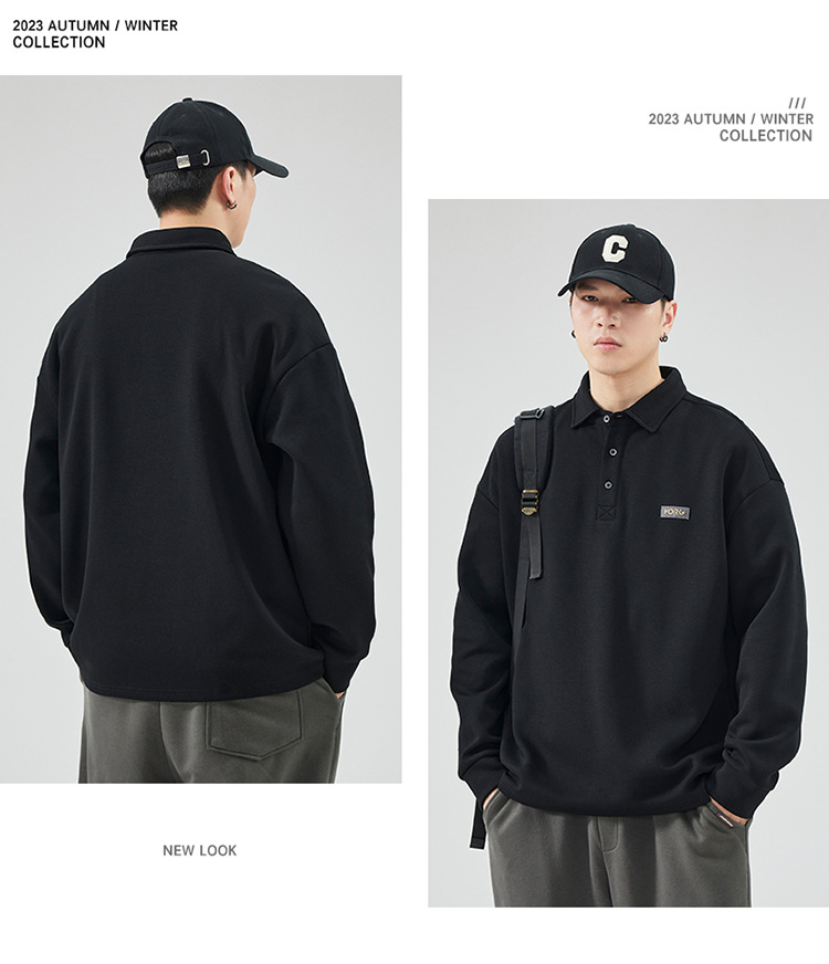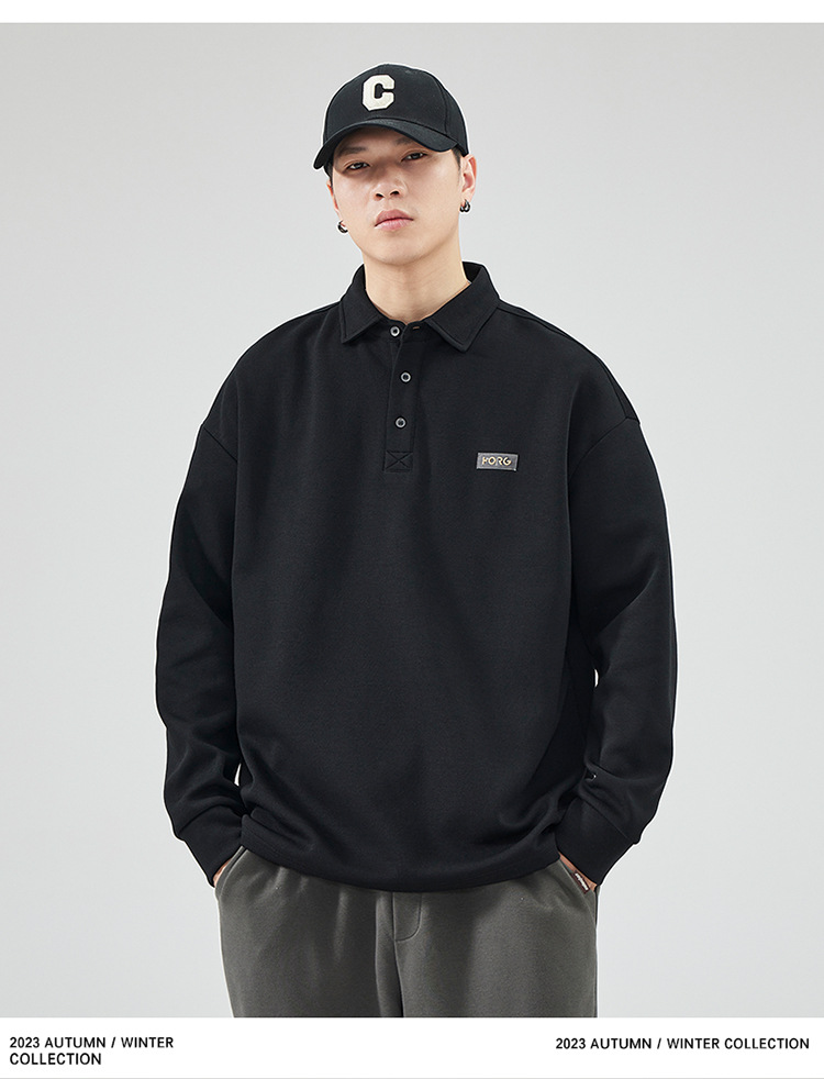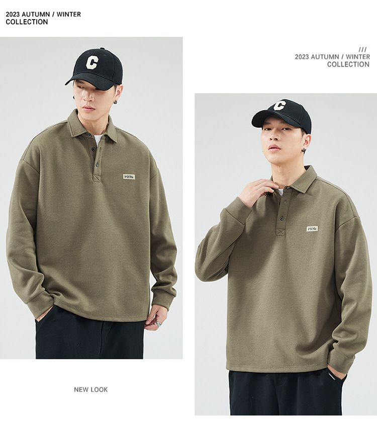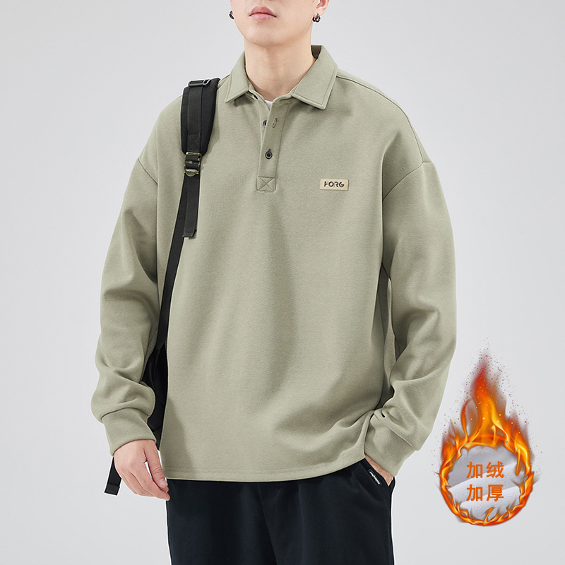 Mu Yuan 남자의 겨울 새 기모 두꺼운 옷깃 스웨터 남자의 유행 브랜드 풀오버 캐주얼 간단한 폴로 셔츠