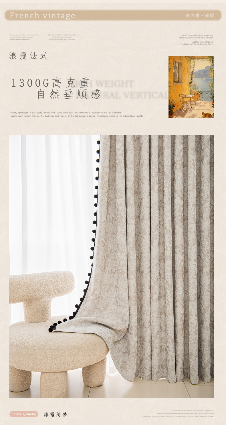 모네 가든 프렌치 레트로 자카드 셔닐 실 정전 커튼 거실 침실 발코니 커튼 Shaoxing Keqiao스토어 가기