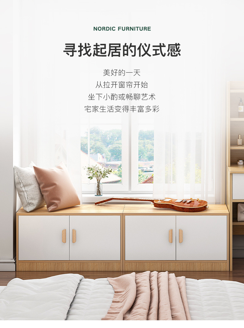 卧室床边柜矮柜自由组合窗边柜床尾长条柜子储物柜防尘窄缝收纳柜