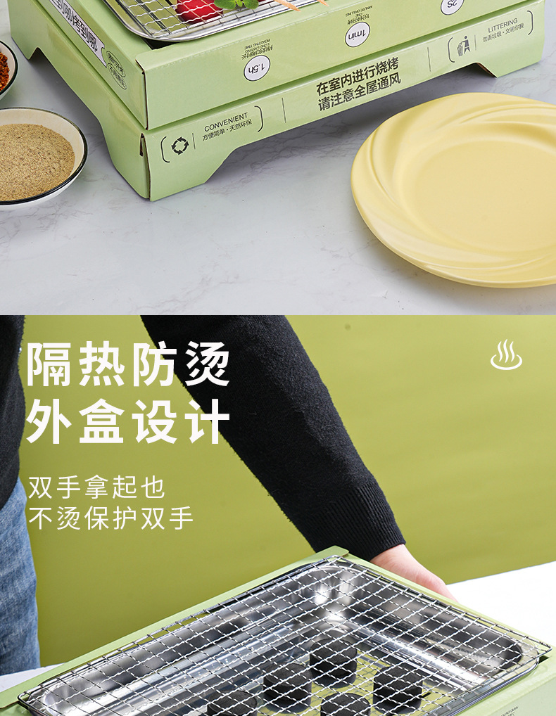 일회용 바베큐 오븐 홈 야외 휴대용 무연 홈 탄소 오븐 캠핑 화재 숯 바베큐 실내스토어 가기