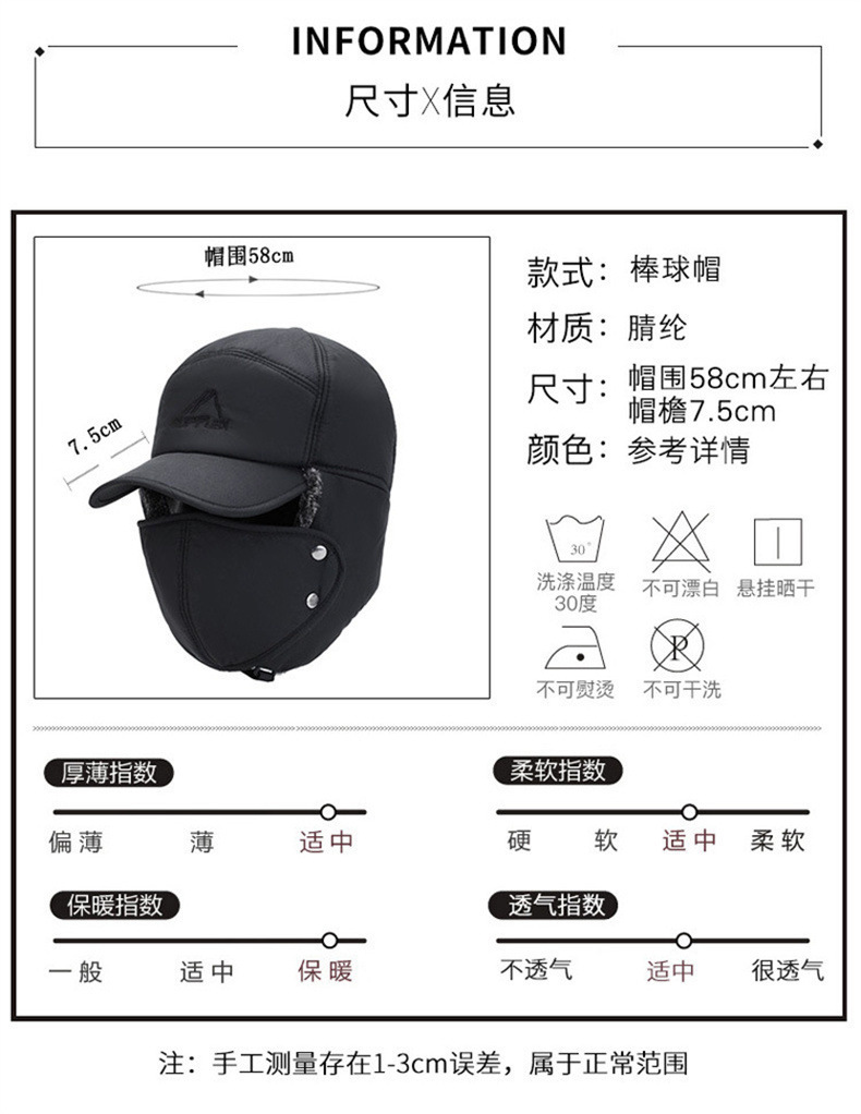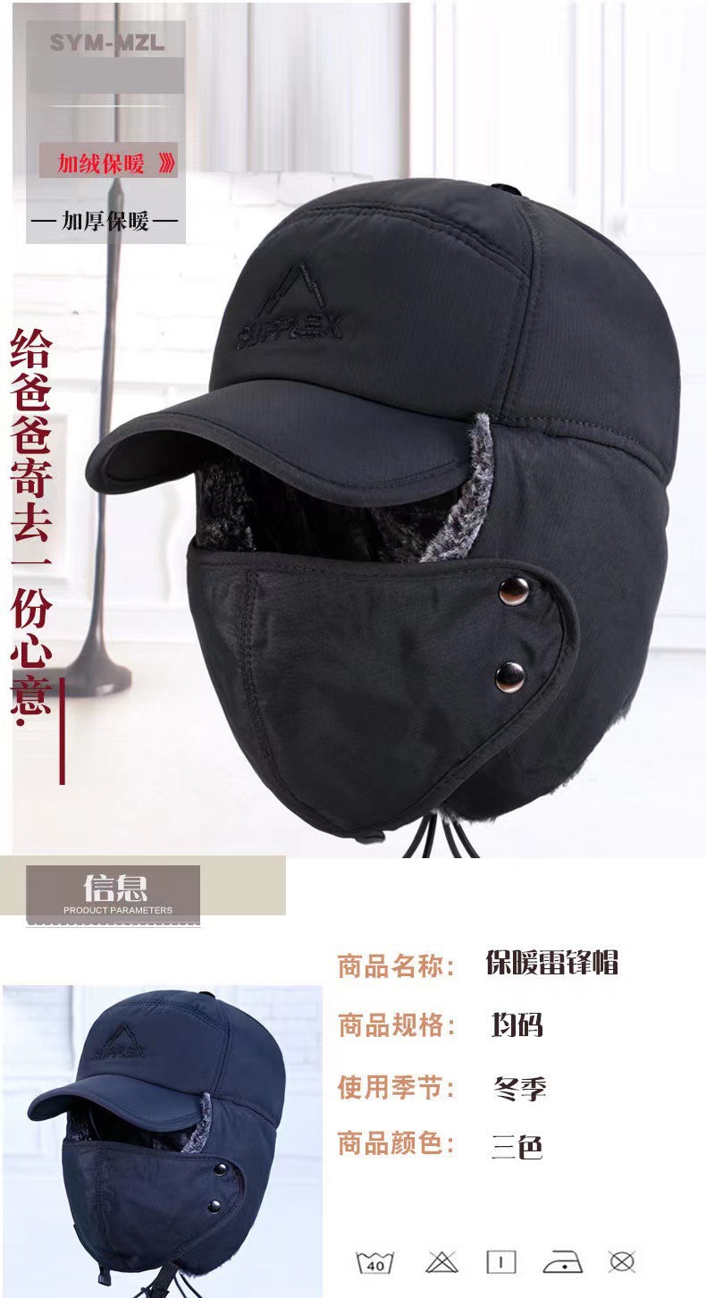 겨울 중년 노인 모자 남자 레이 펑 모자 기모 따뜻한 마스크 귀 보호 타고 면 모자 아빠 할아버지 감기 보호