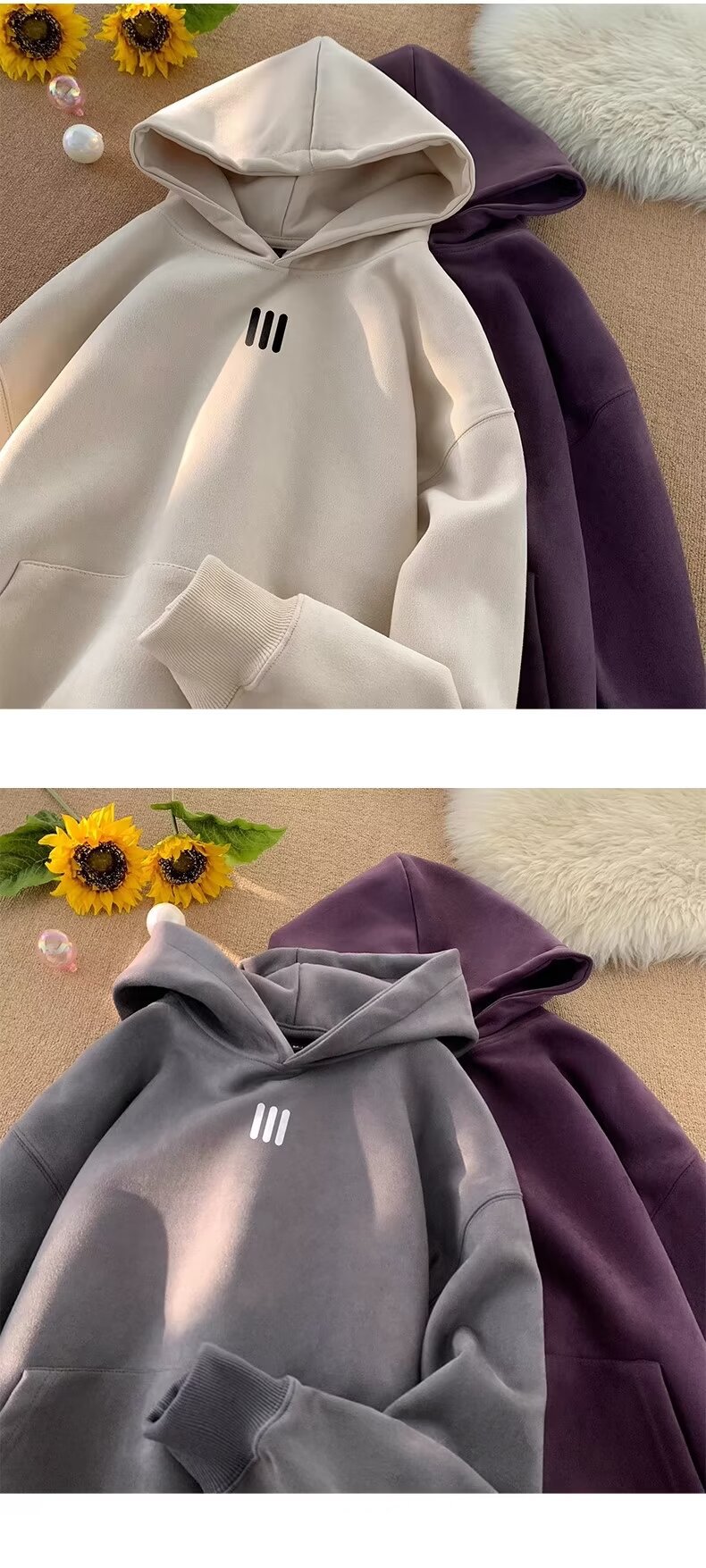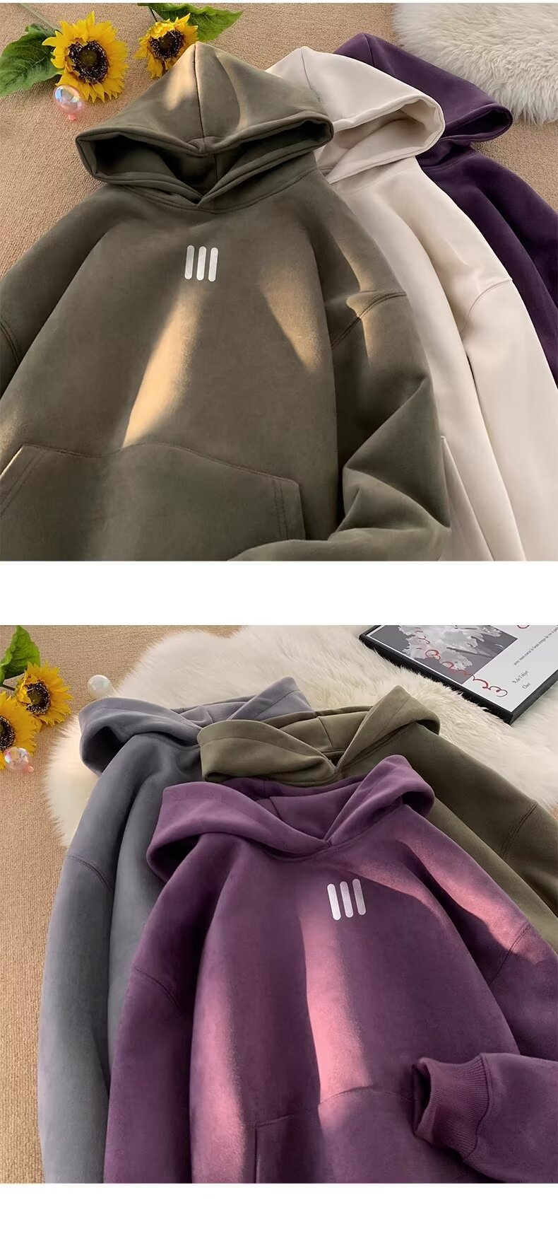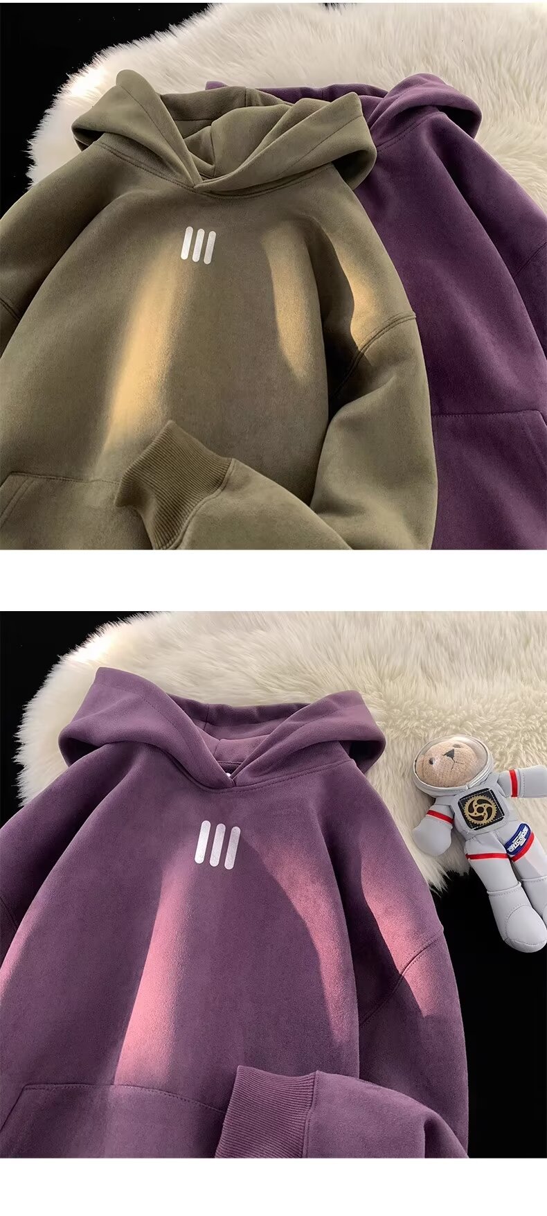 가을 보라색 두꺼운 스웨터 남성과 여성의 스웨이드 헤비 하드 후디 미국식 힙합 커플 코트