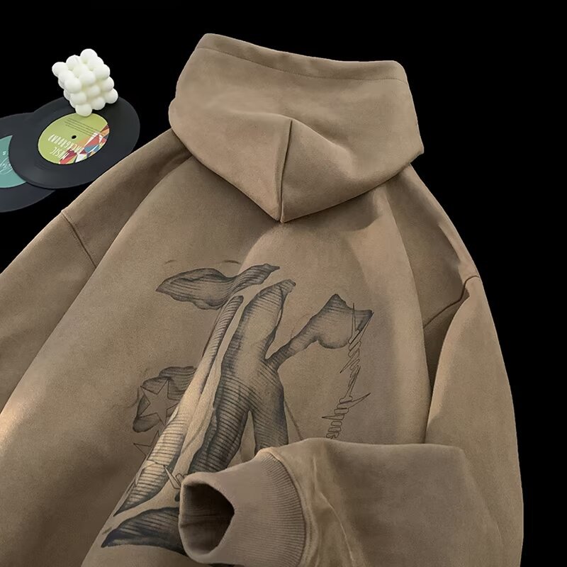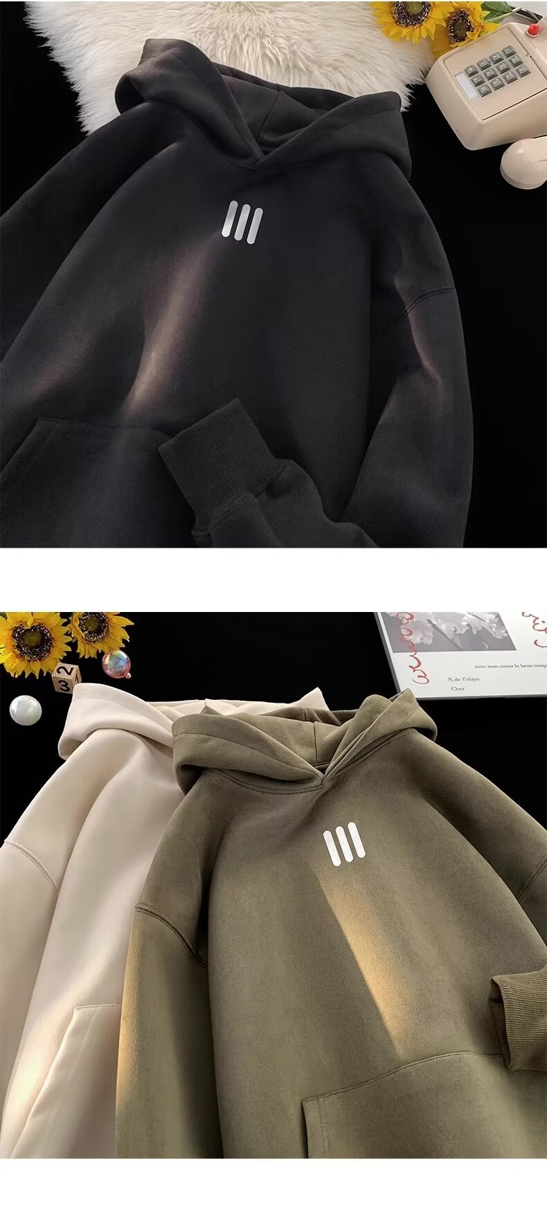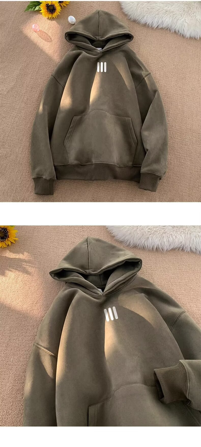 가을 보라색 두꺼운 스웨터 남성과 여성의 스웨이드 헤비 하드 후디 미국식 힙합 커플 코트
