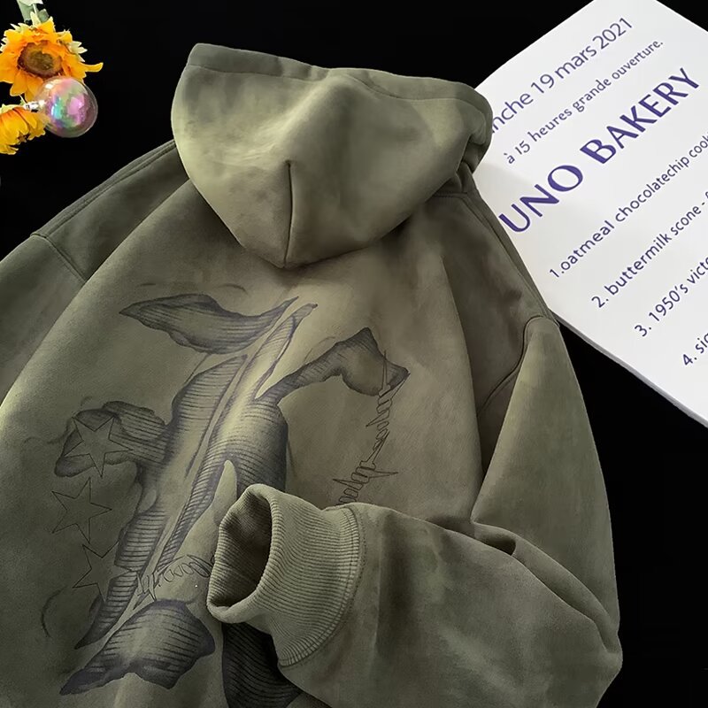 가을 보라색 두꺼운 스웨터 남성과 여성의 스웨이드 헤비 하드 후디 미국식 힙합 커플 코트스토어 가기