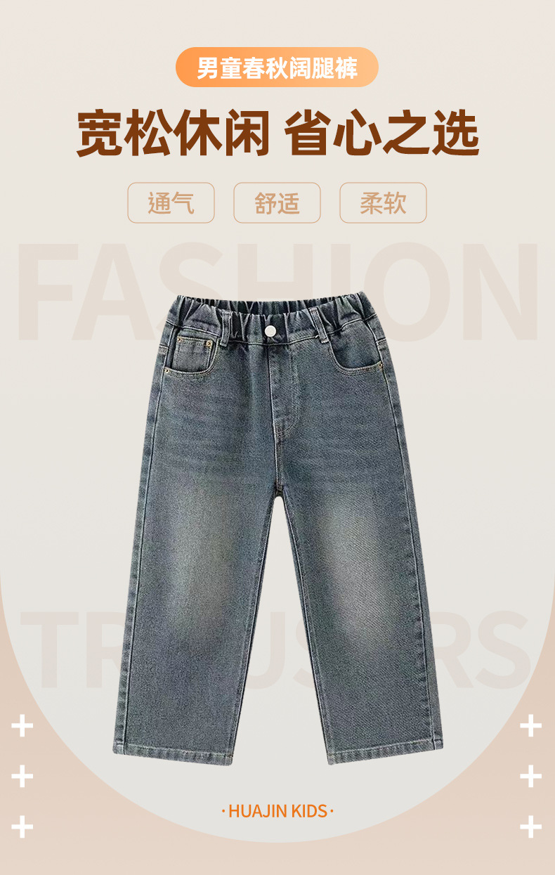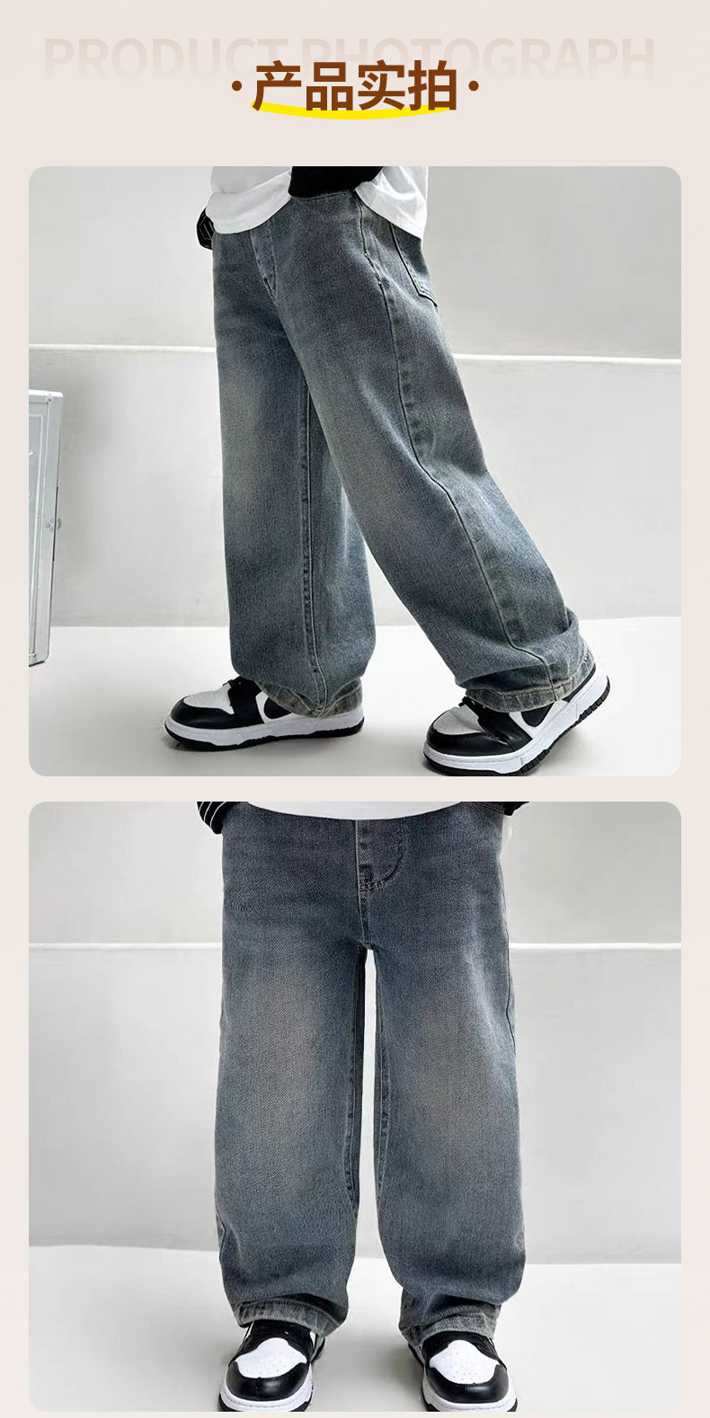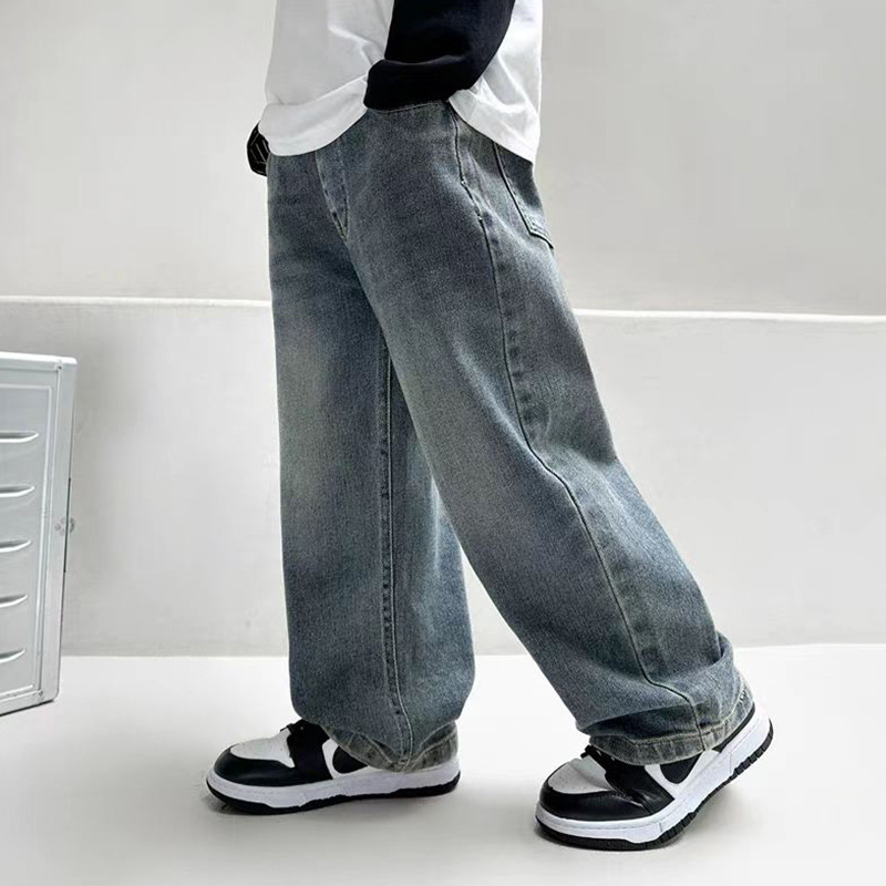 트렌디 한 새로운 도착 Zhongda Boys의 데님 넓은 다리 바지 어린이 스트레이트 다리 바지 복고풍 빨래 드레스 크래프트 청바지