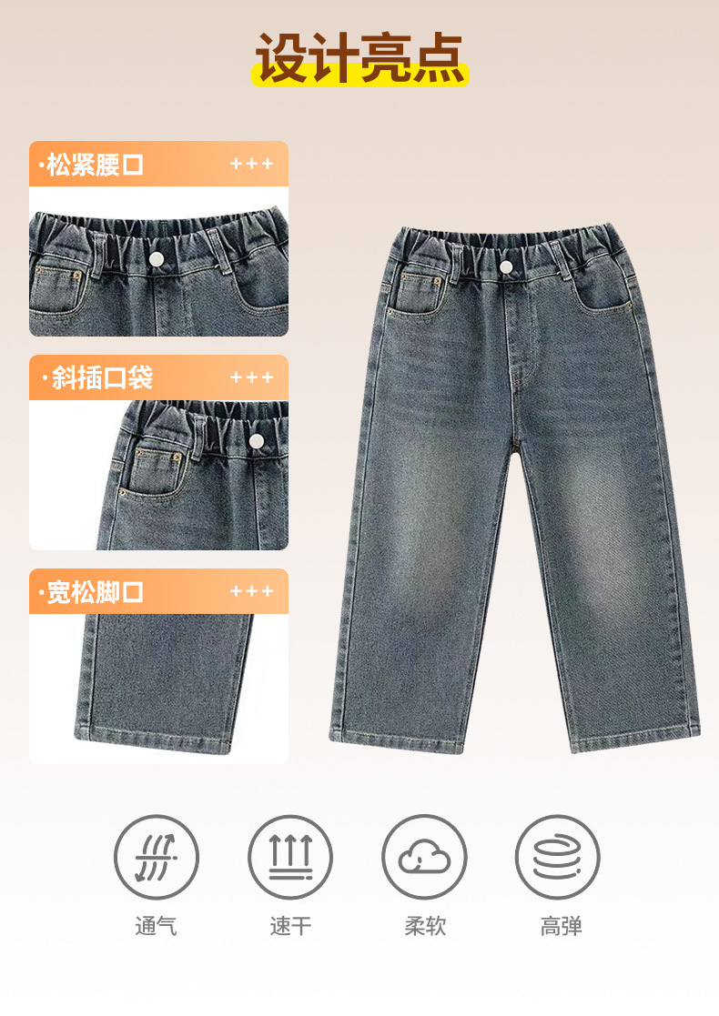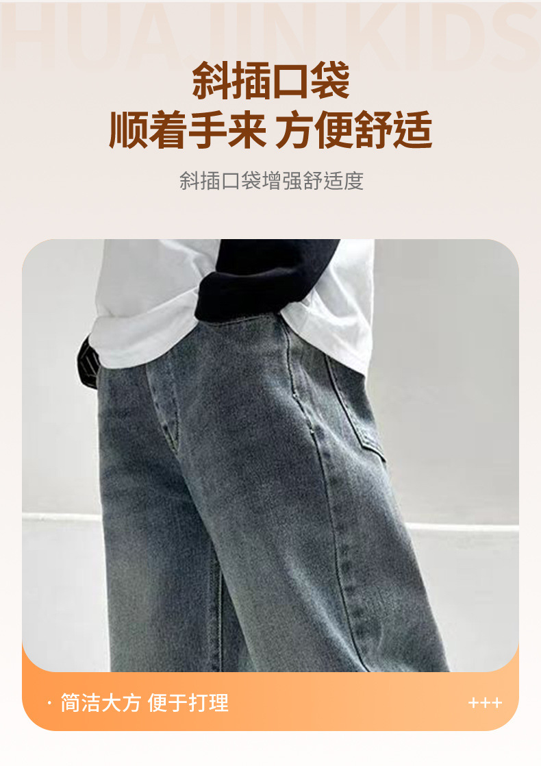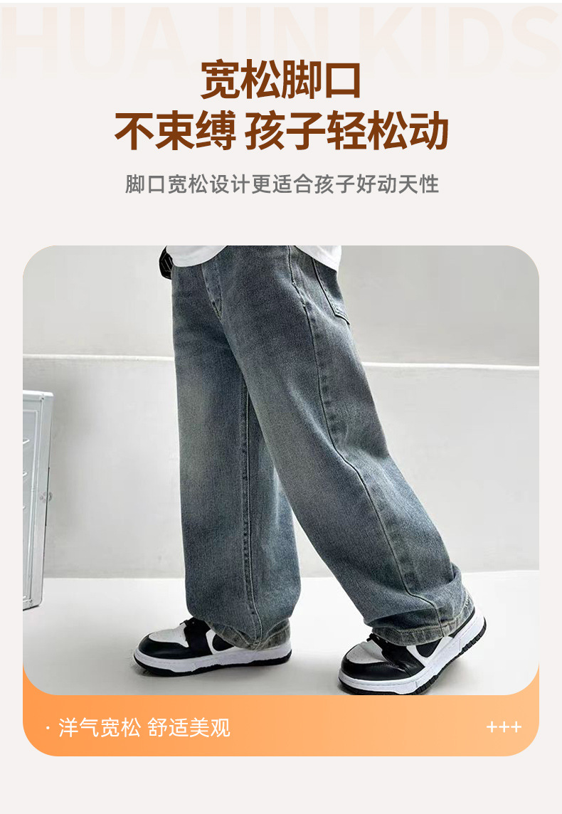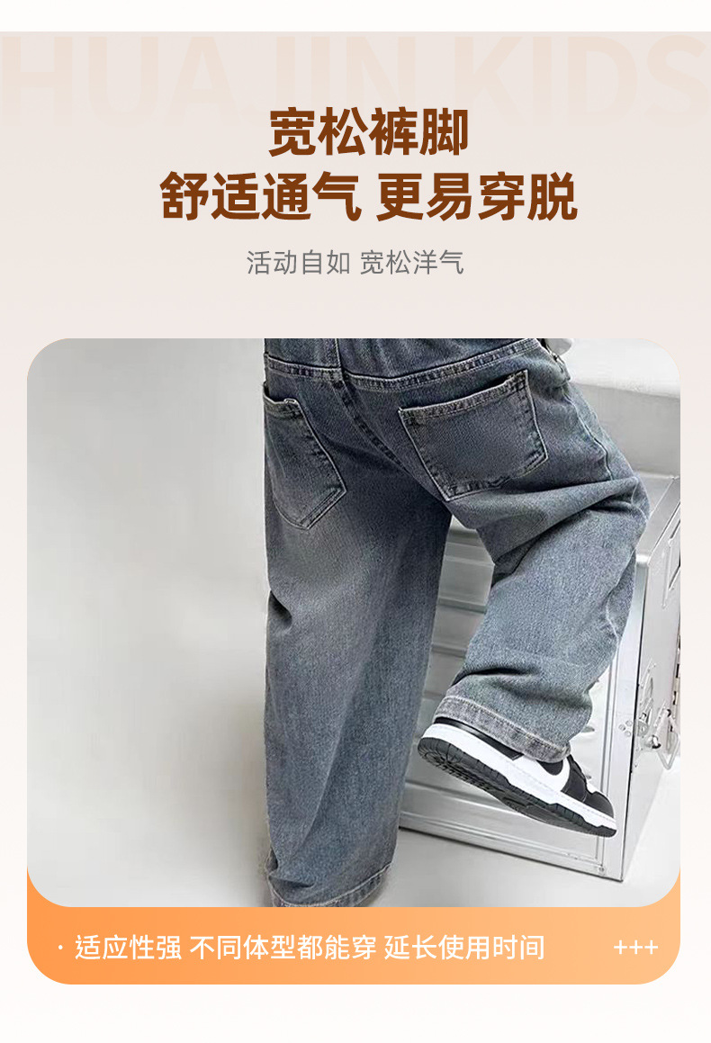 트렌디 한 새로운 도착 Zhongda Boys의 데님 넓은 다리 바지 어린이 스트레이트 다리 바지 복고풍 빨래 드레스 크래프트 청바지