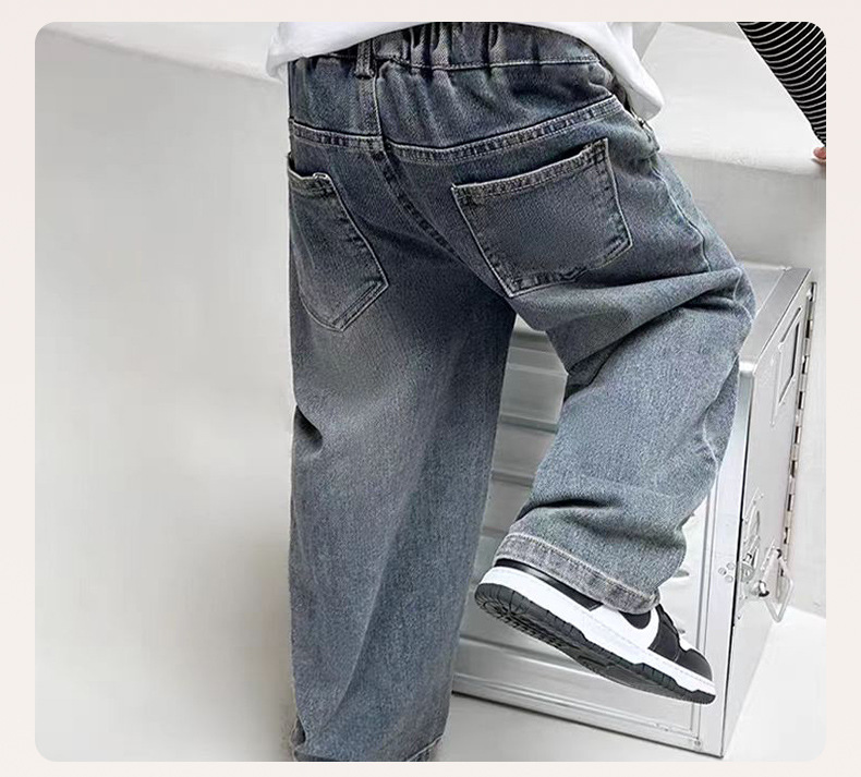 트렌디 한 새로운 도착 Zhongda Boys의 데님 넓은 다리 바지 어린이 스트레이트 다리 바지 복고풍 빨래 드레스 크래프트 청바지스토어 가기