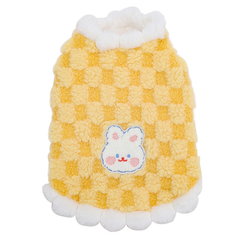 • 귀여운 토끼 격자 무늬 플러시 조끼-노란색