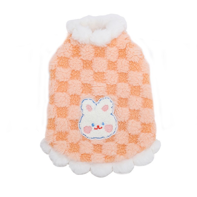 萌兔格子毛绒马甲