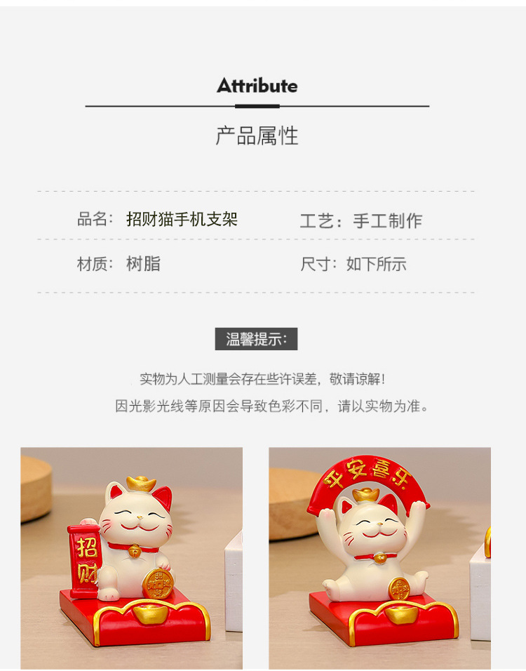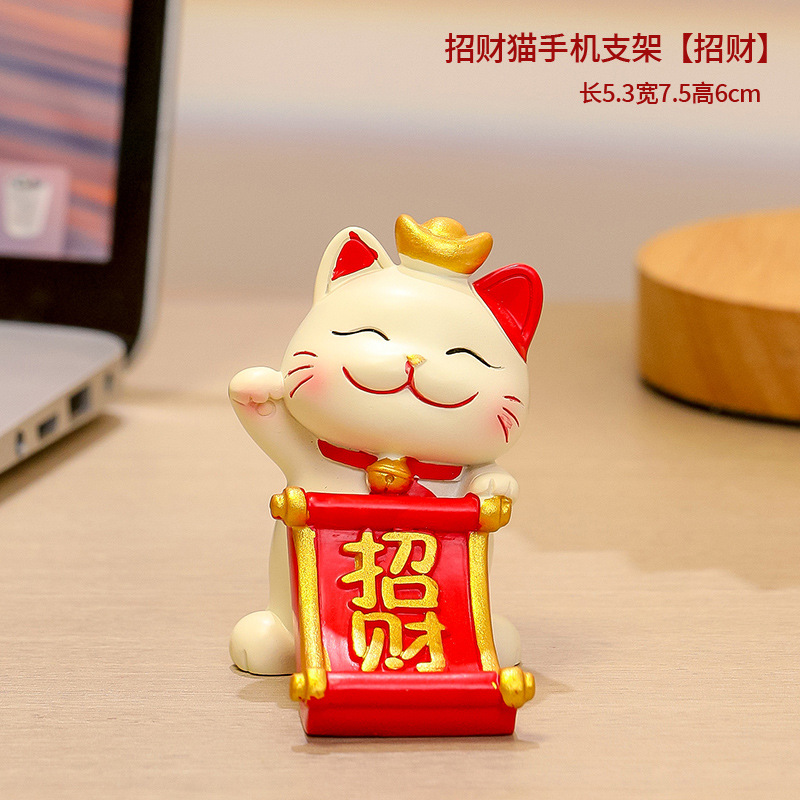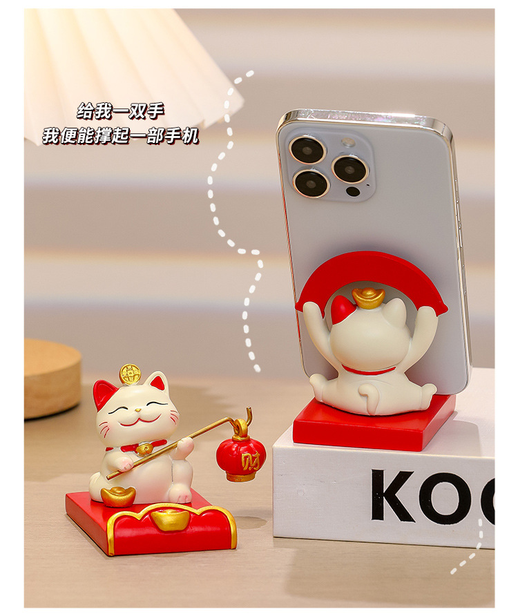 중국 스타일 행복한 행운의 고양이 휴대 전화 스탠드 스테이션 장식 데스크탑 장식 감압 선물 연례 회의 동반자 선물스토어 가기