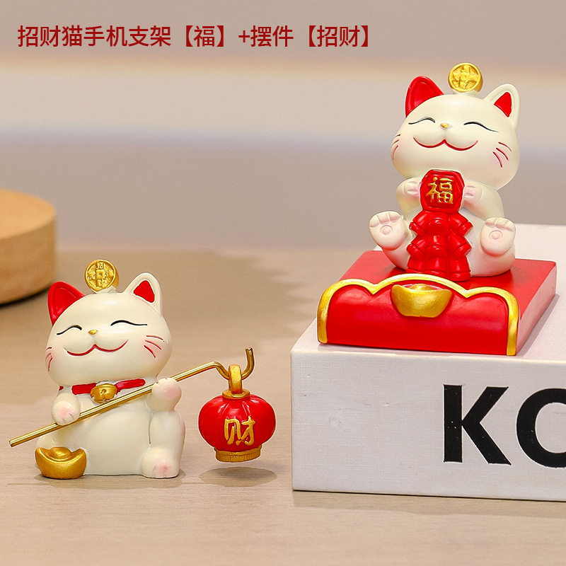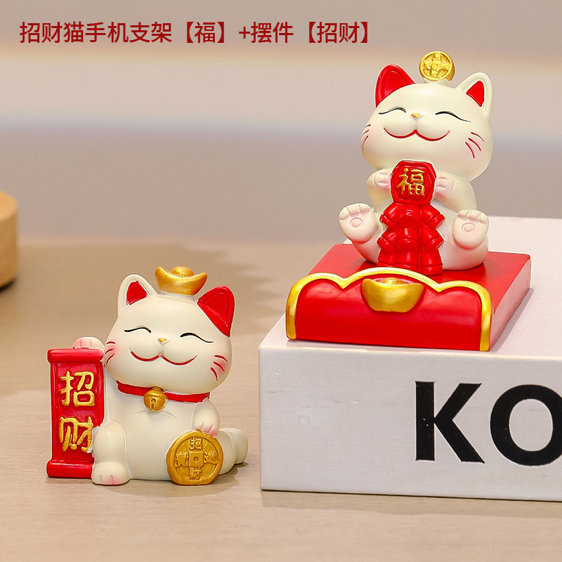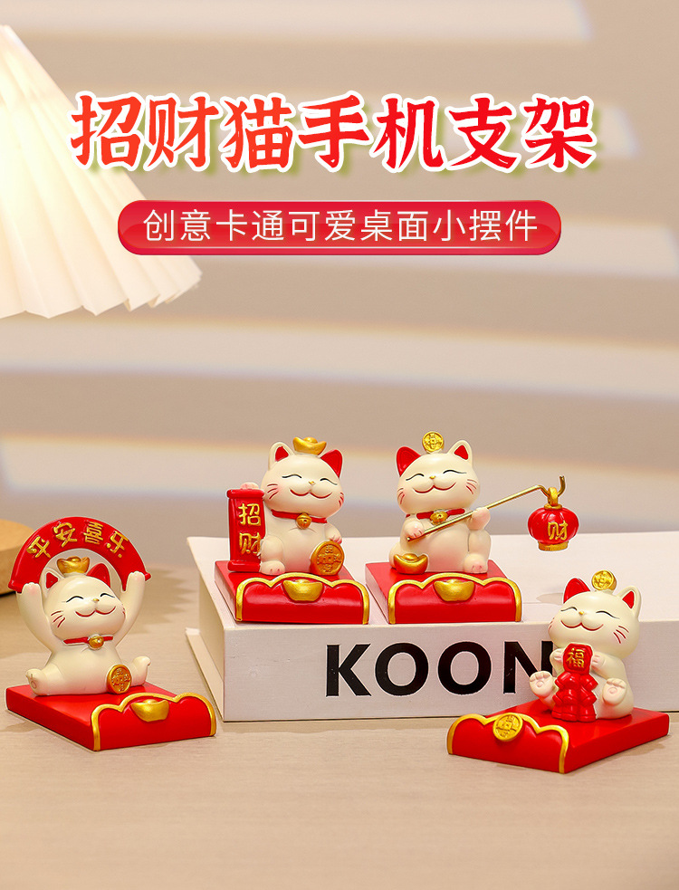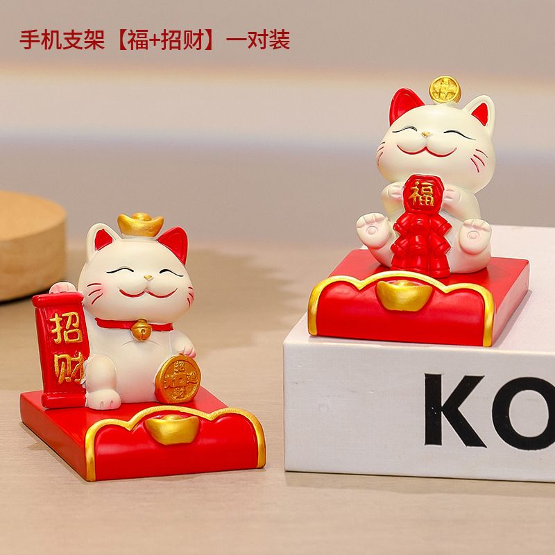 중국 스타일 행복한 행운의 고양이 휴대 전화 스탠드 스테이션 장식 데스크탑 장식 감압 선물 연례 회의 동반자 선물