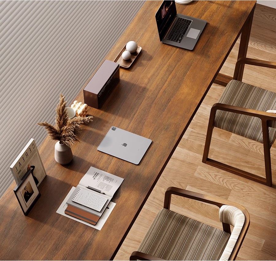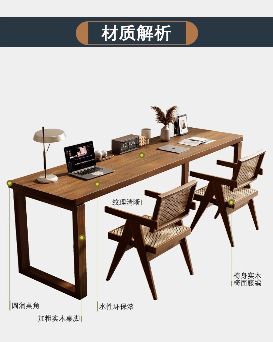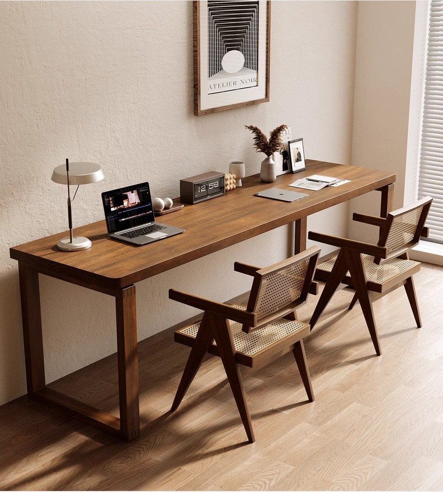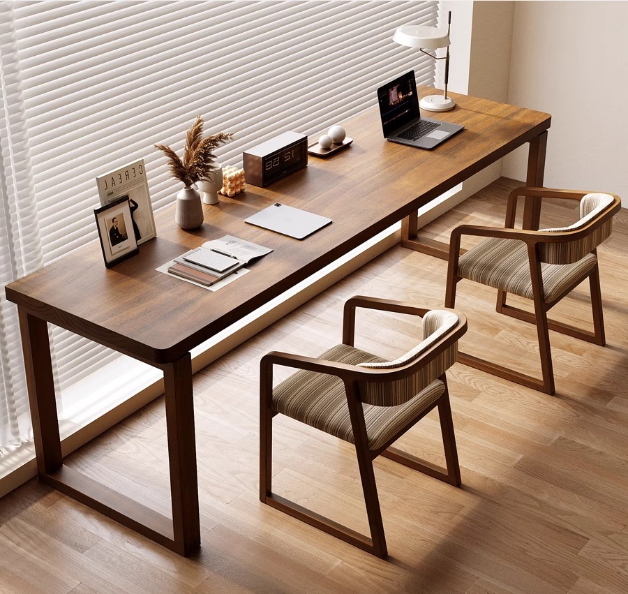 심플한 원목 책상 가정용 사무실 컴퓨터 책상과 의자 세트 침실 학습용 쓰기용 이인용 긴 책상 재고 도매스토어 가기