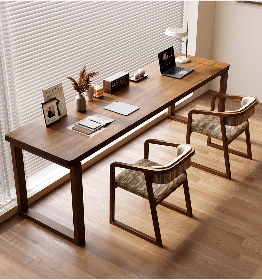 심플한 원목 책상 가정용 사무실 컴퓨터 책상과 의자 세트 침실 학습용 쓰기용 이인용 긴 책상 재고 도매