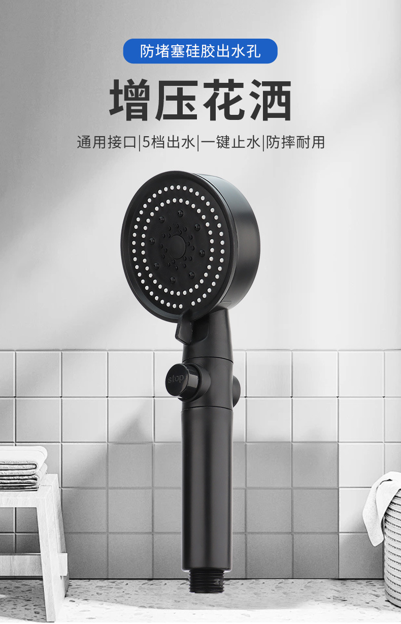 블랙 사무라이, 가압 샤워 노즐 블랙 5 단 샤워 세트 가정용 목욕 비 휴대용 샤워 헤드