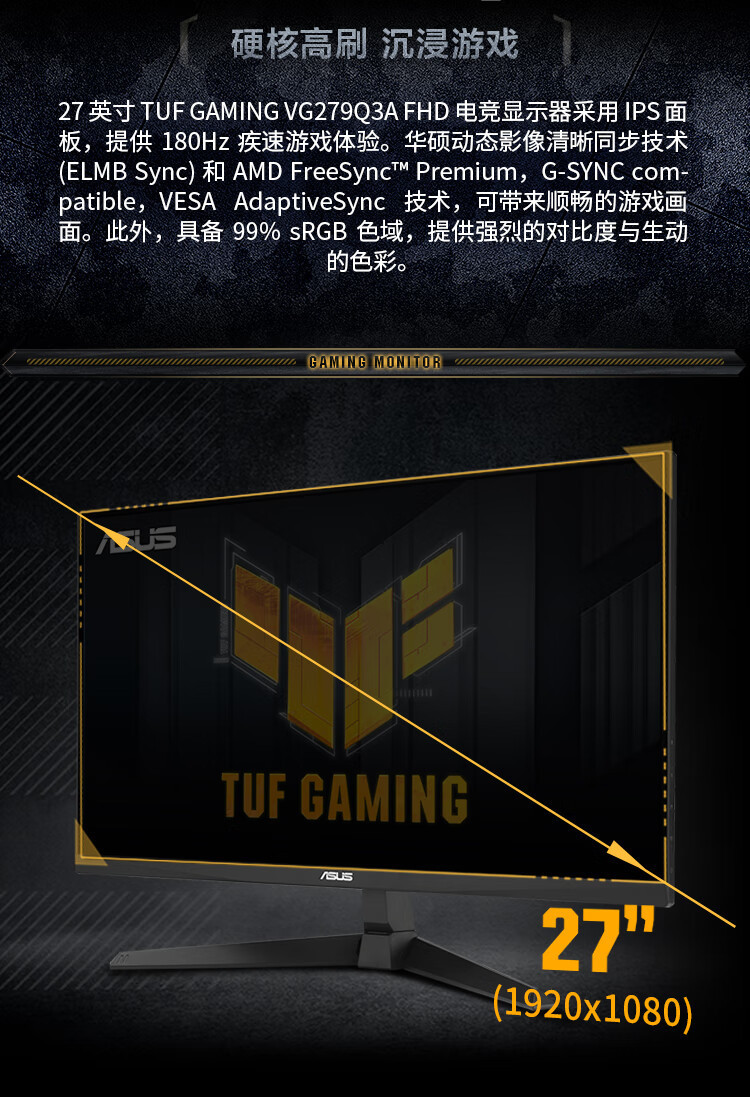 TUF 게임 VG279Q3A 27 인치 컴퓨터 게임 컴퓨터 디스플레이 LCD 화면 180Hz 1ms스토어 가기