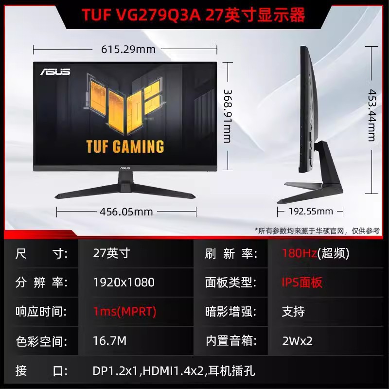 TUF 게임 VG279Q3A 27 인치 컴퓨터 게임 컴퓨터 디스플레이 LCD 화면 180Hz 1ms