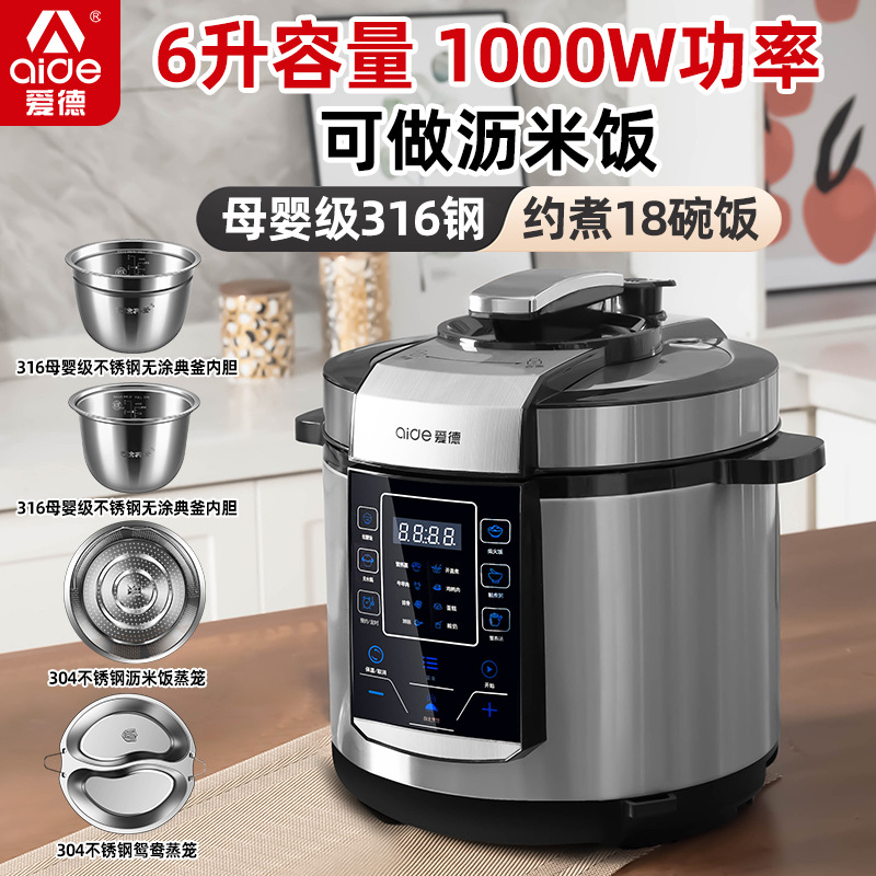 Ed 6L 전기 압력 밥솥 가구 대용량 304 스테인레스 스틸 지능형 압력 밥솥 4 ~ 8 명 다기능 밥솥스토어 가기