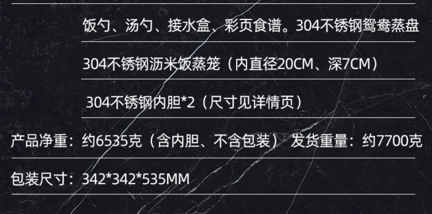 • 6리터 [더블 304 식품 등급 강철 방광] 포함: 304 스테인리스 스틸 스티머