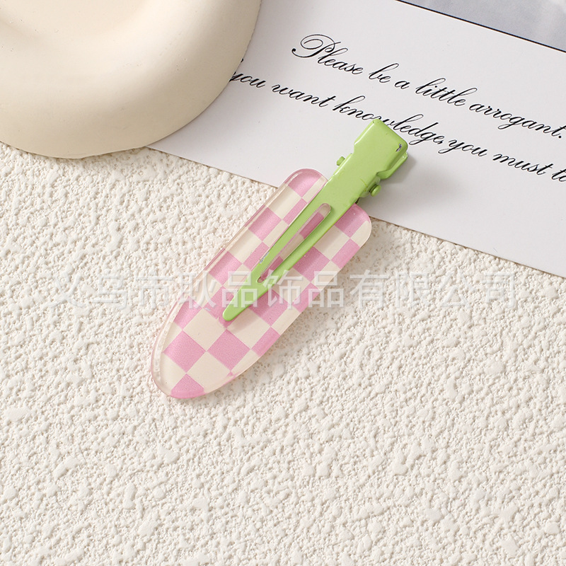 • 큰 분홍색 격자 무늬 + 녹색 클립