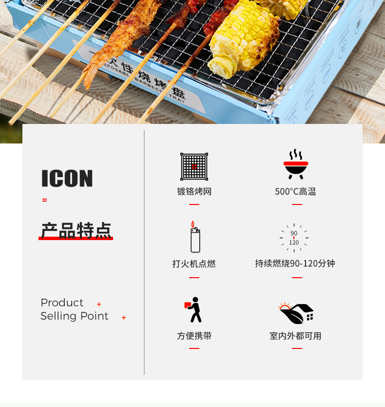 • 일회용 바베큐 그릴 + 숯 50개 + 브러시 + 그물