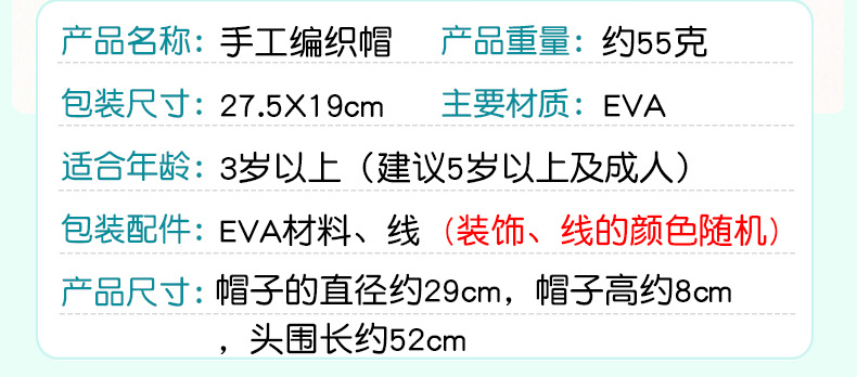 수제 모자 DIY 소재 가방 짠 모자 반제품 EVA 어린이 수제 유치원 교육 완구스토어 가기