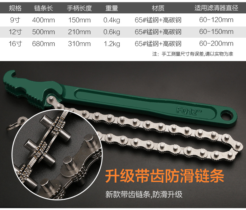 오일 필터 렌치 체인 파이프 펜치 벨트 정수기 렌치 미끄럼 방지 필터 그리드 제거 도구