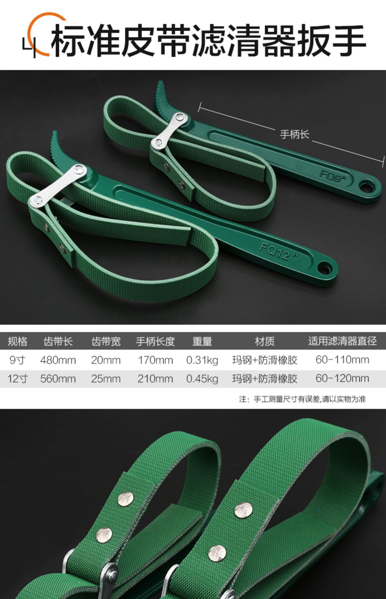 • 벨트 렌치 9inch 녹색 핸들(60-110mm)