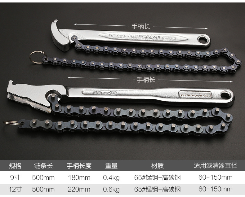 오일 필터 렌치 체인 파이프 펜치 벨트 정수기 렌치 미끄럼 방지 필터 그리드 제거 도구스토어 가기
