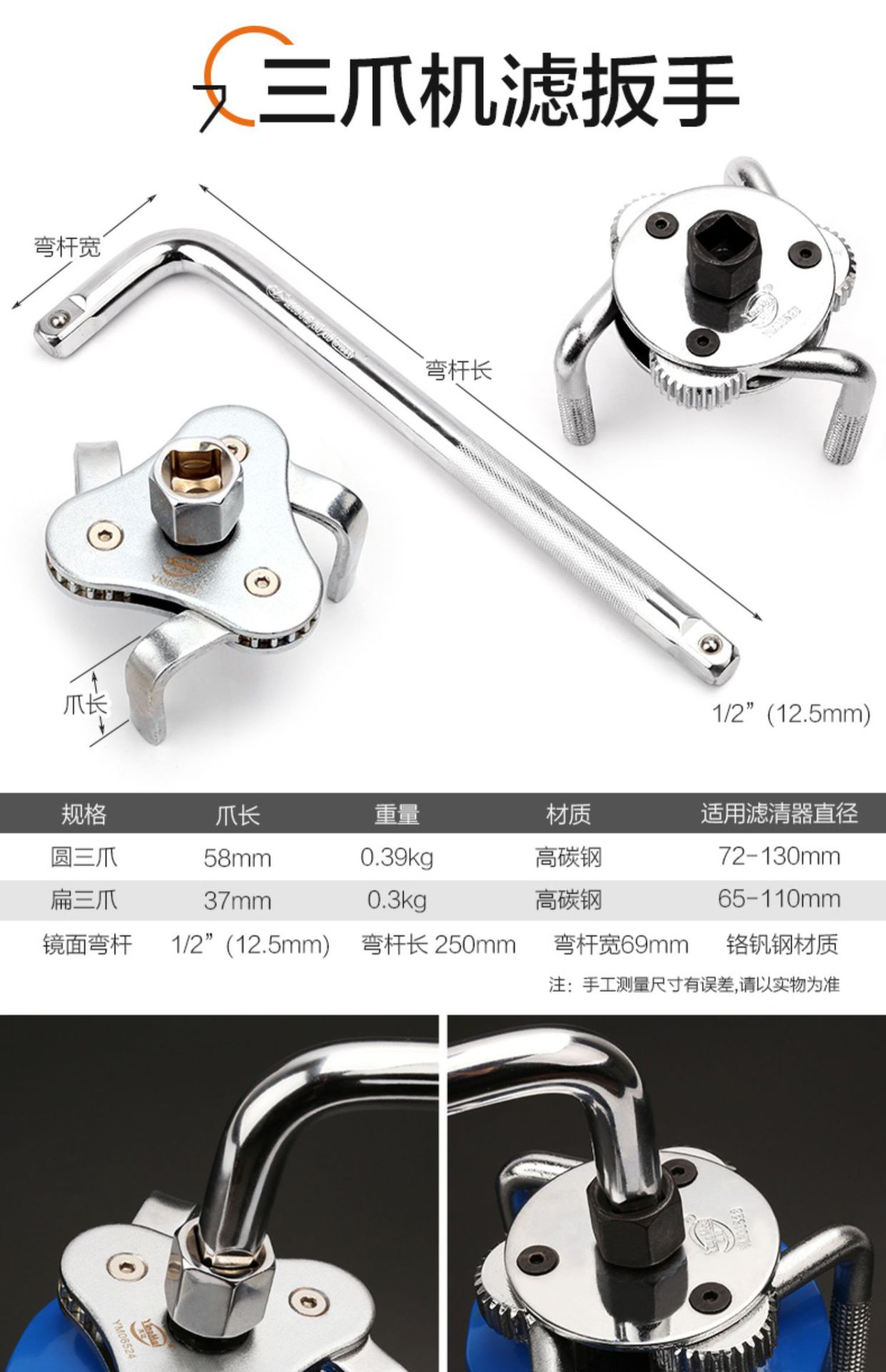 • 3구(플랫) 렌치(65-110mm) + 1/2 굽은 막대