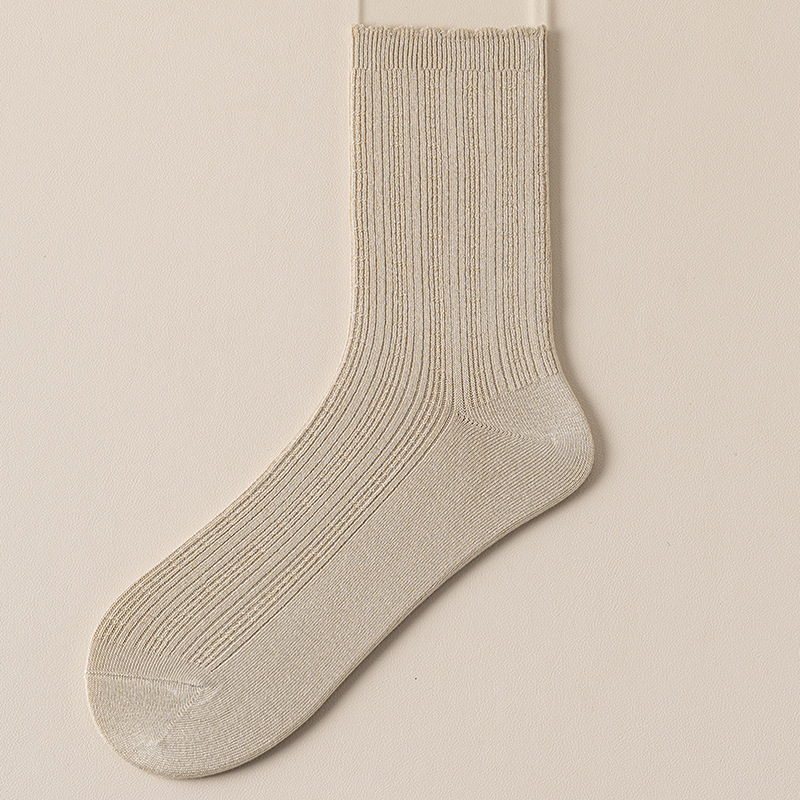 양말 여성의 가을과 겨울 편안한 뽕나무 실크 하이 퀄리티 캐주얼 통기성 귀 통기성 수직 줄무늬 단색 여성용 양말