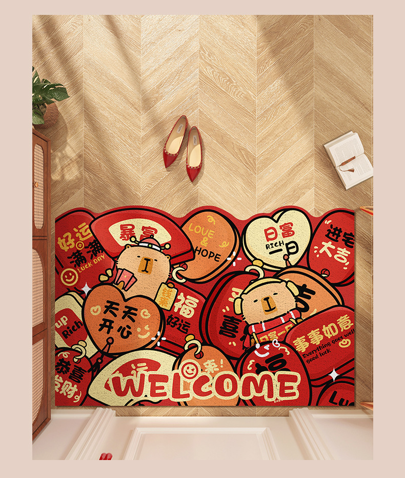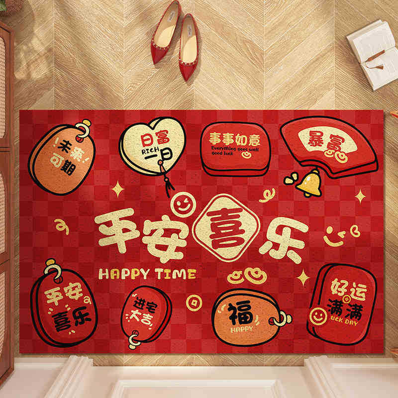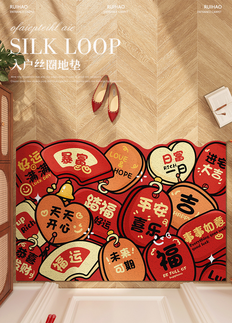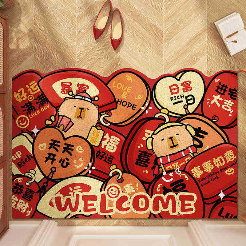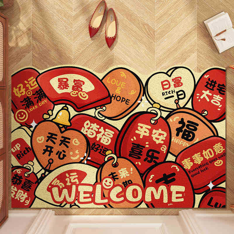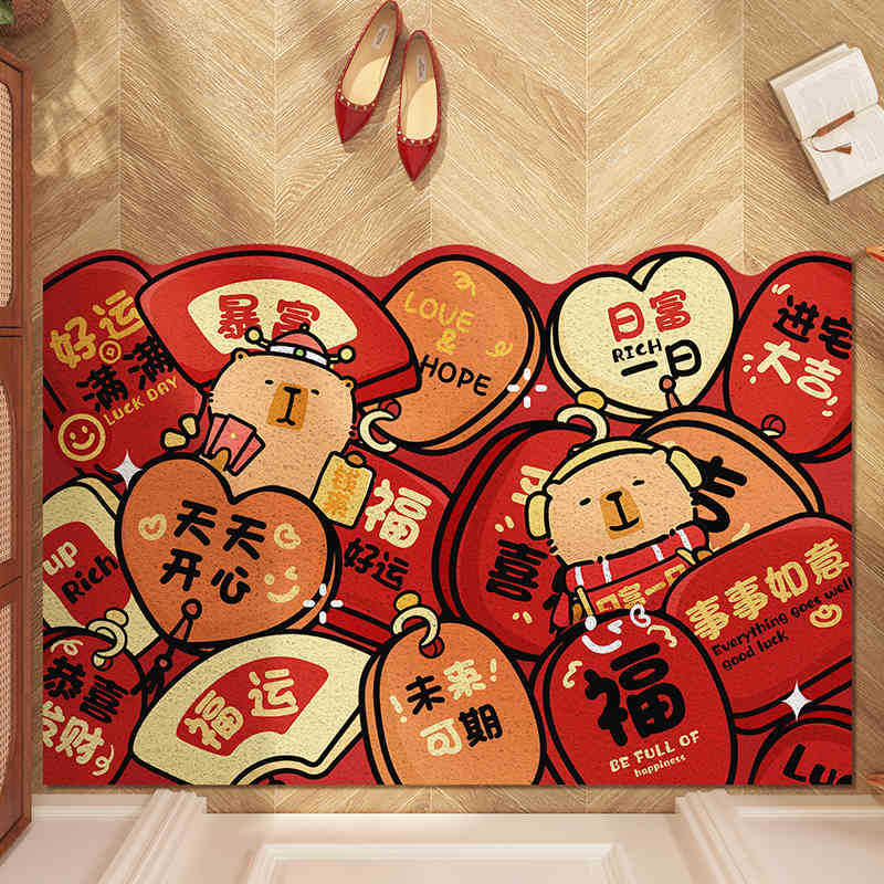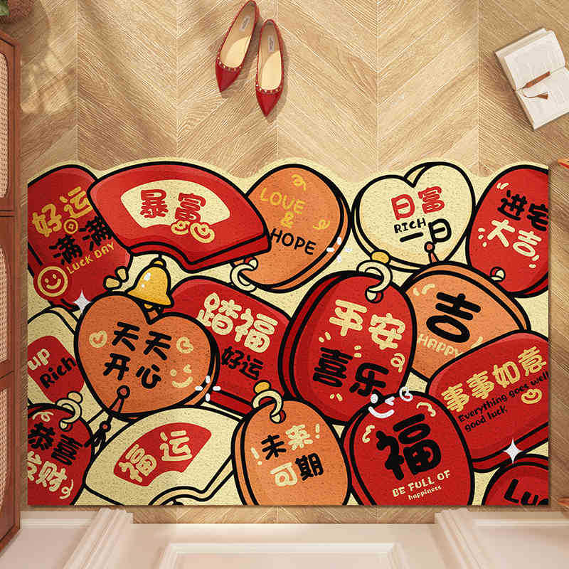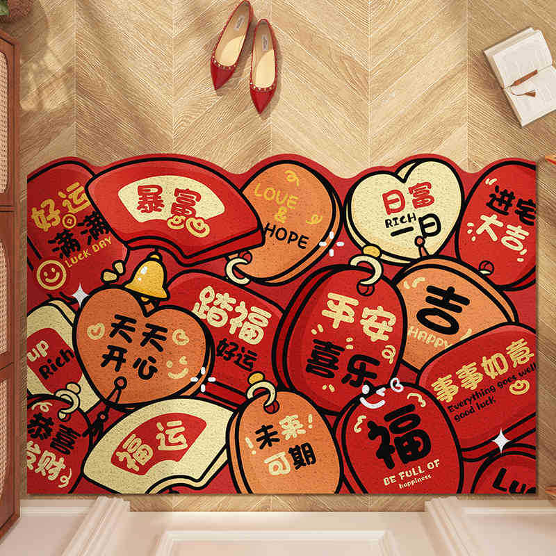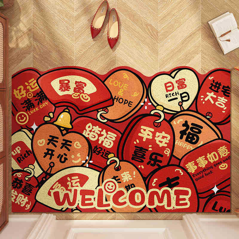 입구 문 매트 빨간 축제 입구 문 매트 홈 도어 매트 매트 비 슬립 실크 링 먼지 방지 착용 도어 절단 가능한 발 매트